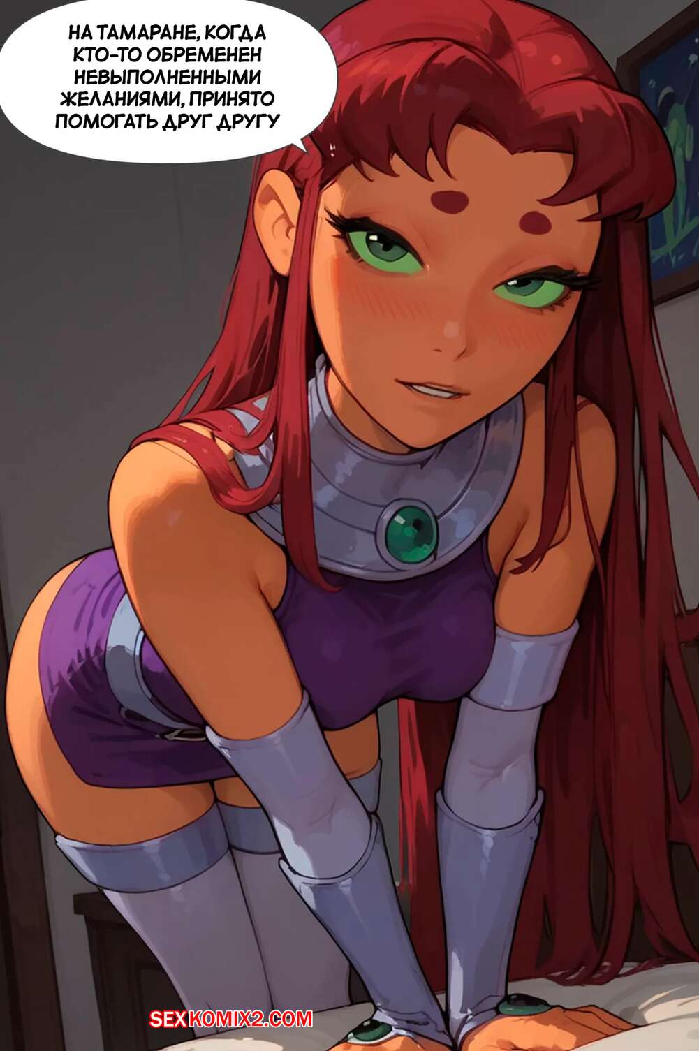 Порно комикс Teen Titans. Обещания даны для того, чтобы их выполнять. Часть 3. Scarlet Meow Рейвен и Старфайр были очень возбуждены и решили повеселиться. Девушки разделись и стали ласкать друг дружку, после чего занялись страстной лесбийской еблей, получив огромное удовольствие.
