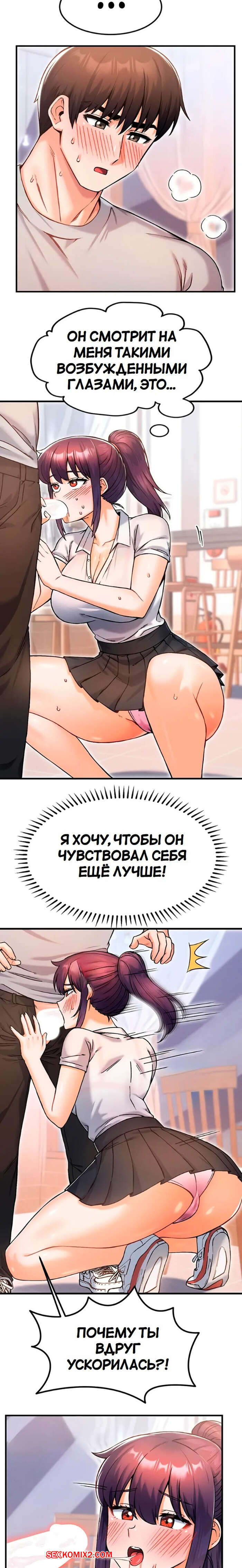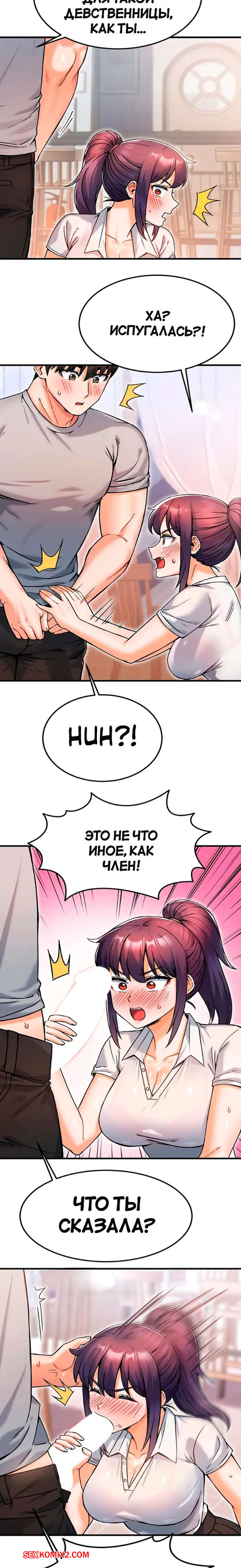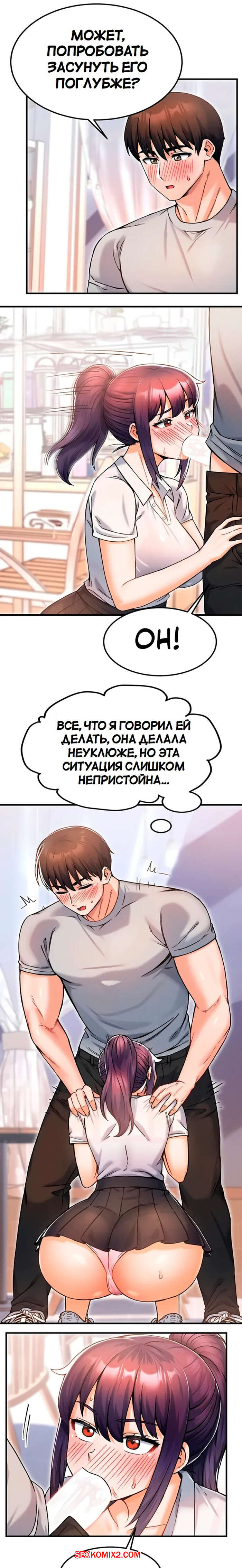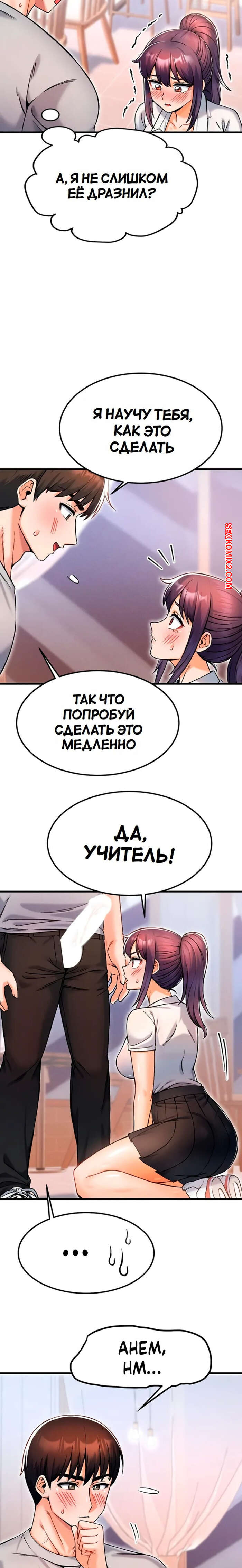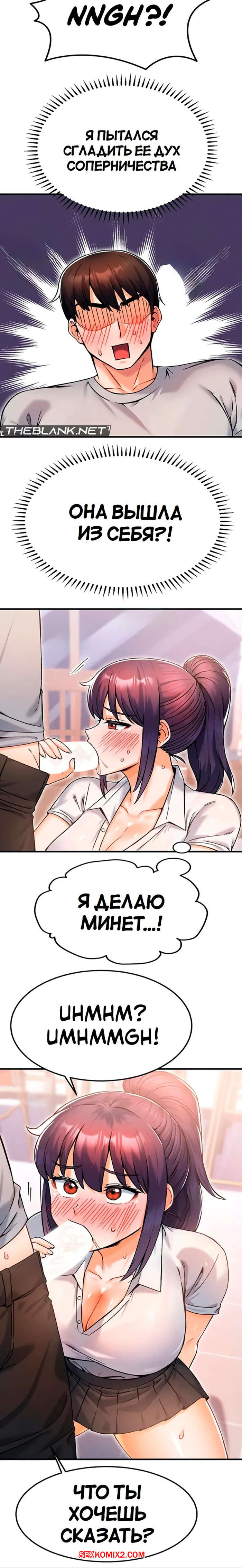 Порно комикс Боссы Канчоля. Часть 11. gangcheol ui sajangnimdeul Горячая брюнетка была очень возбуждена и решила повеселиться со своим дружком. Она встала на колени и отсосала хуй парня, желая ощутить его поскорее в себе.