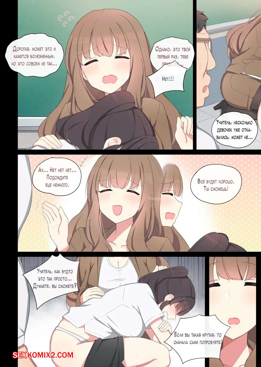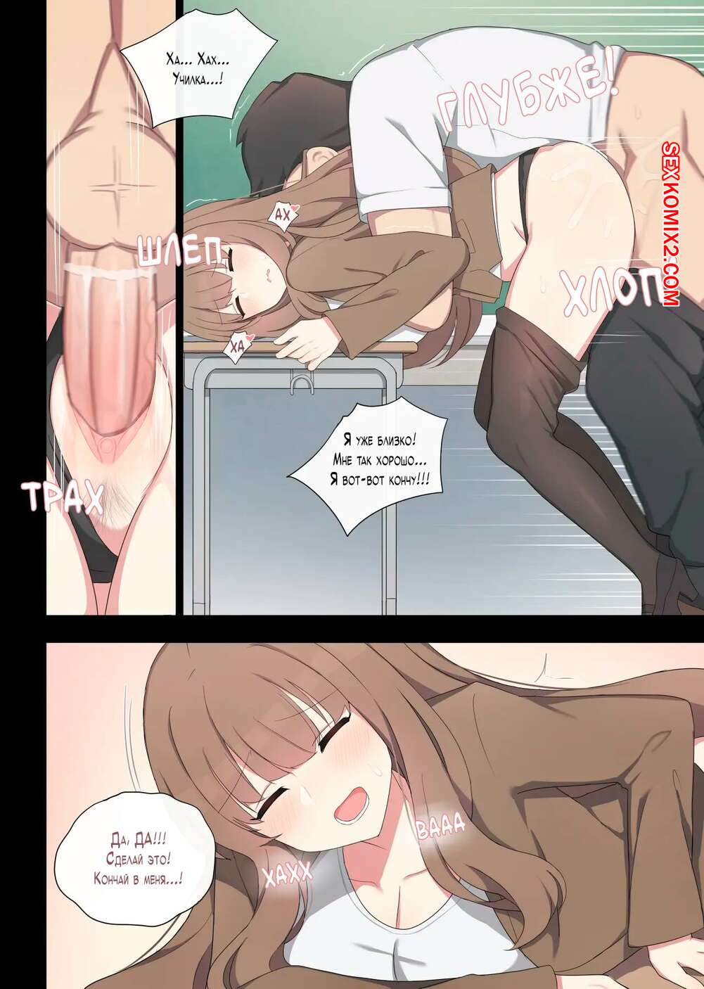 Порно комикс Практика спаривания. Часть 2. Mating Practice. Poyeop Горячая брюнетка была очень возбуждена и решила повеселиться со своим учителем. Она разделась и возбудила парня шикарным телом, после чего дала ему выебать свою пизденку.