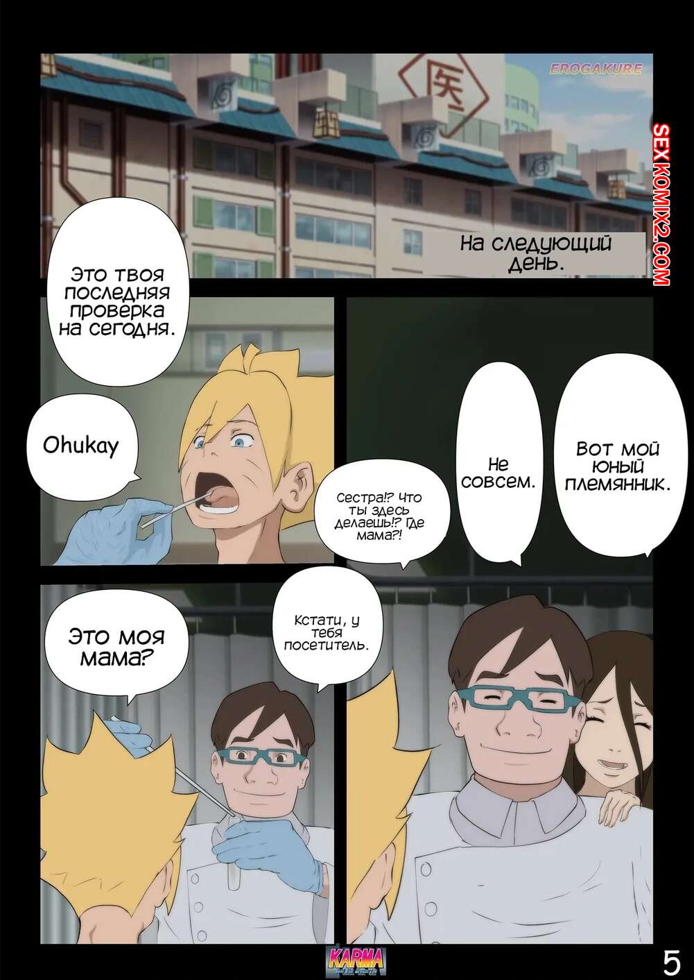 Порно комикс Боруто. Карма и ее тайны. Часть 3. Karma And Its Mysteries Боруто очнулся в больнице и ждет, что его навестит мама, но она никак к нему не идет. Красотка осталась дома одна с Каваки и дала ему выебать свою задницу, после чего сынок заполнил попку мамочки.