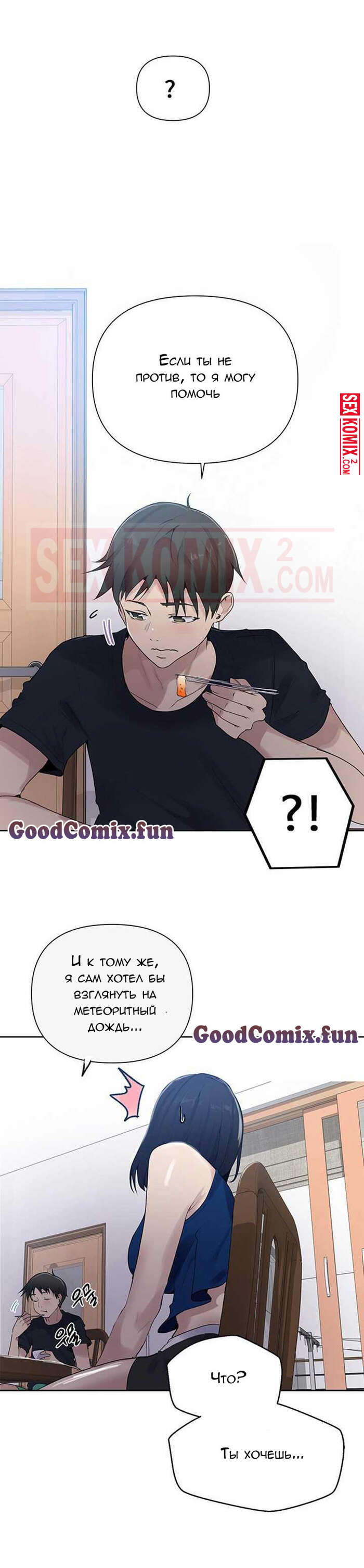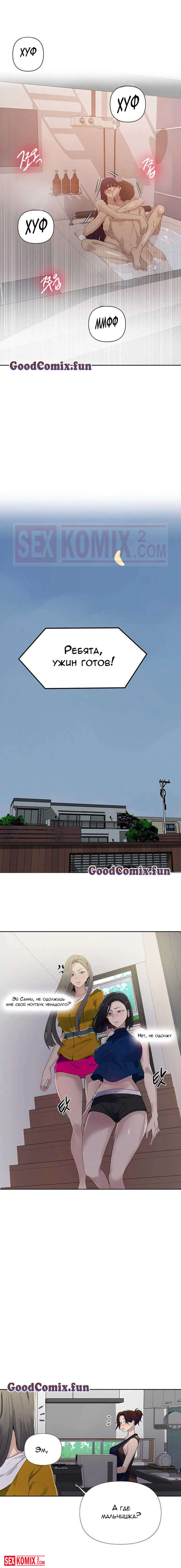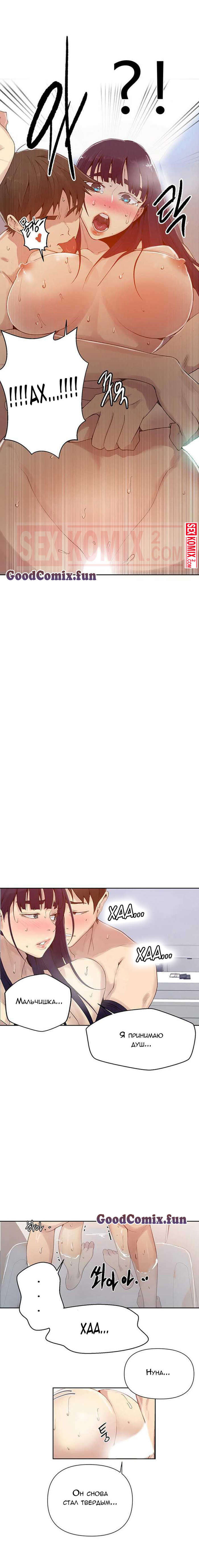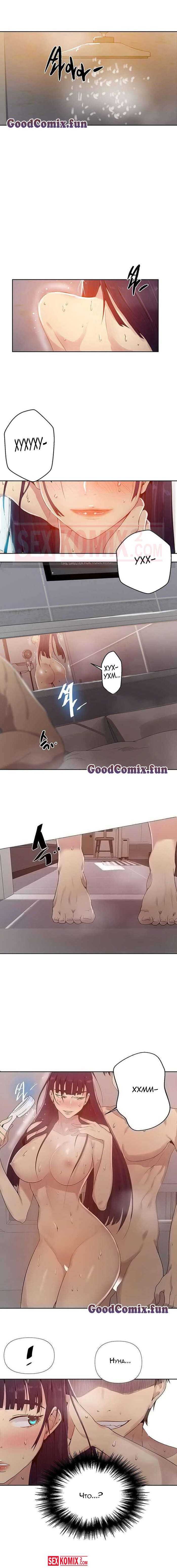 Порно комикс Тайное обучение. Часть 66. Secret Class. Девушка только вернулась домой и пошла в душ, в душевой появился голый парень. Он хотел секса, она устала, что отказа он не примет.