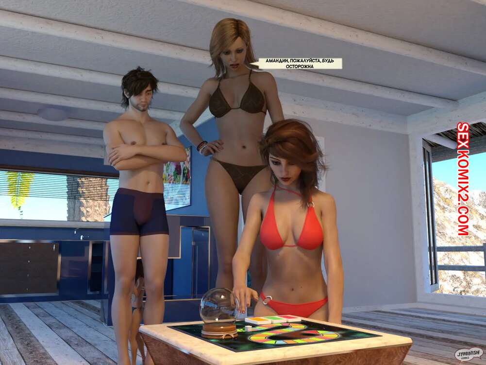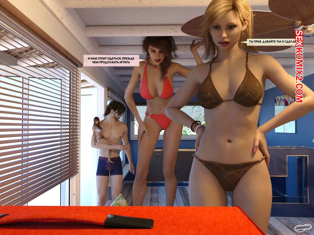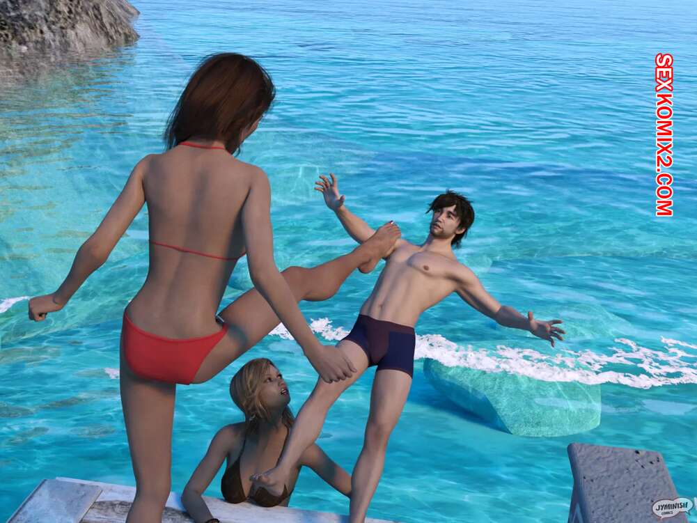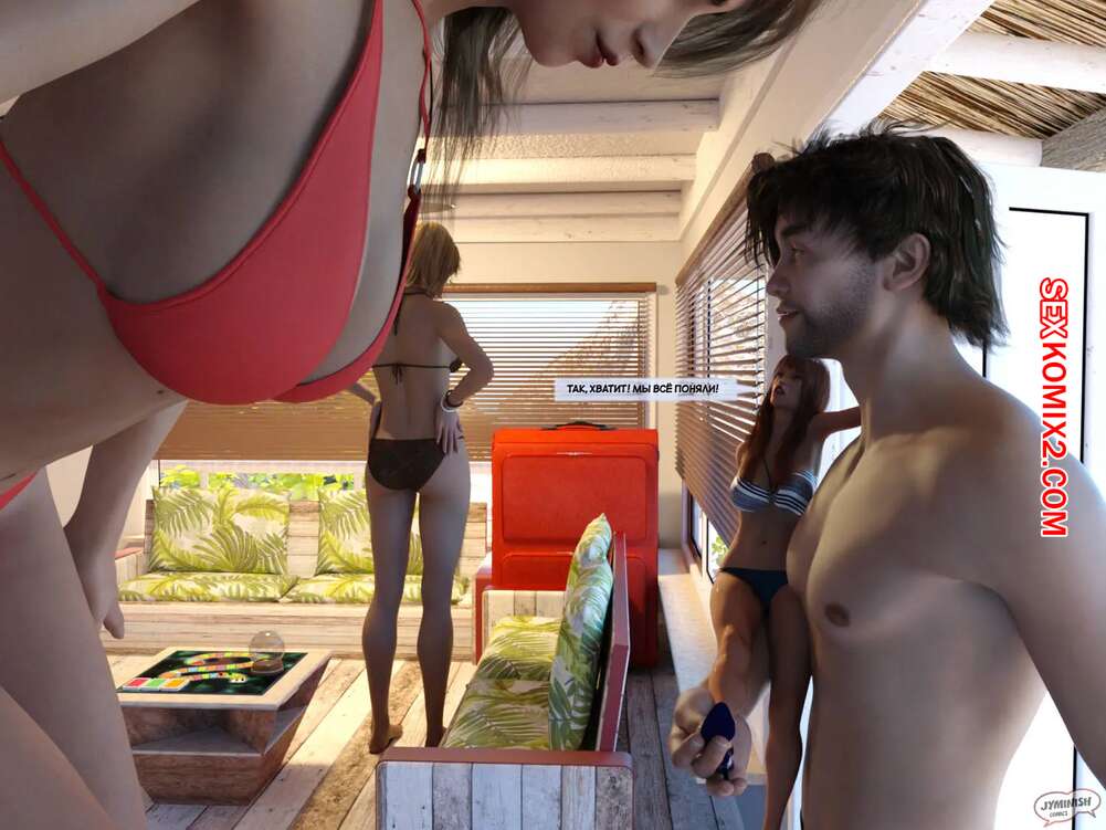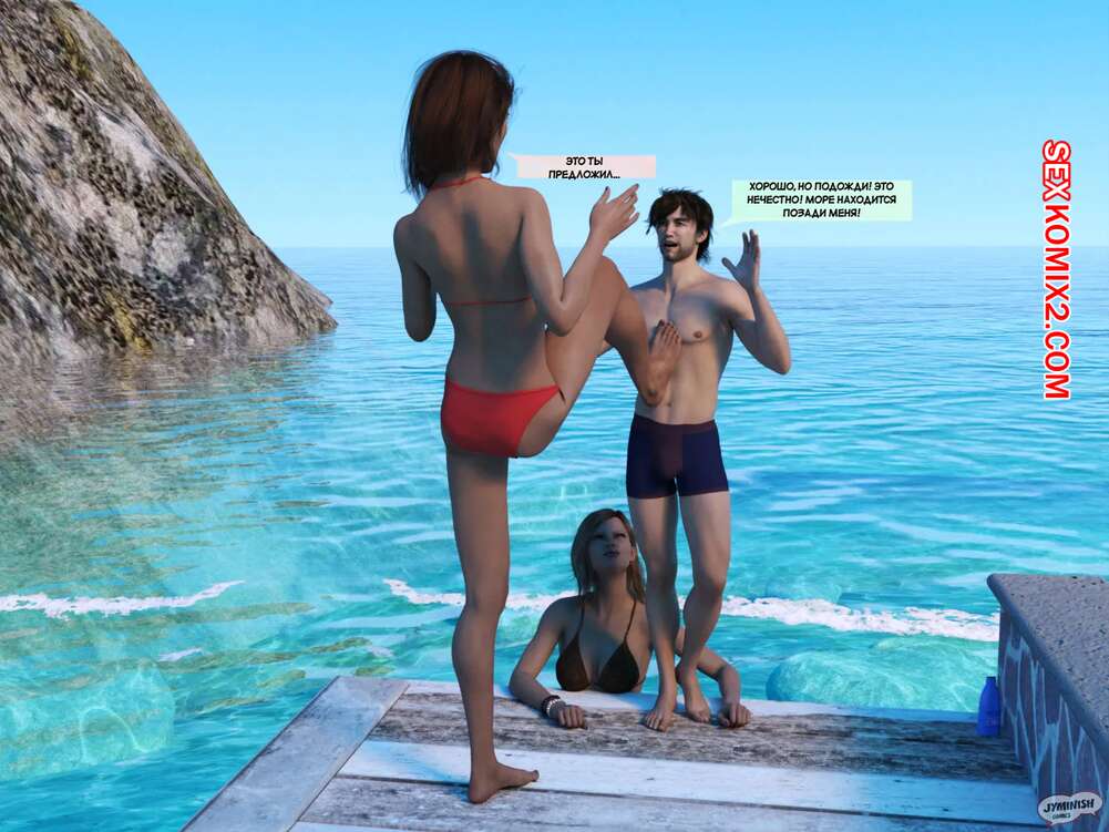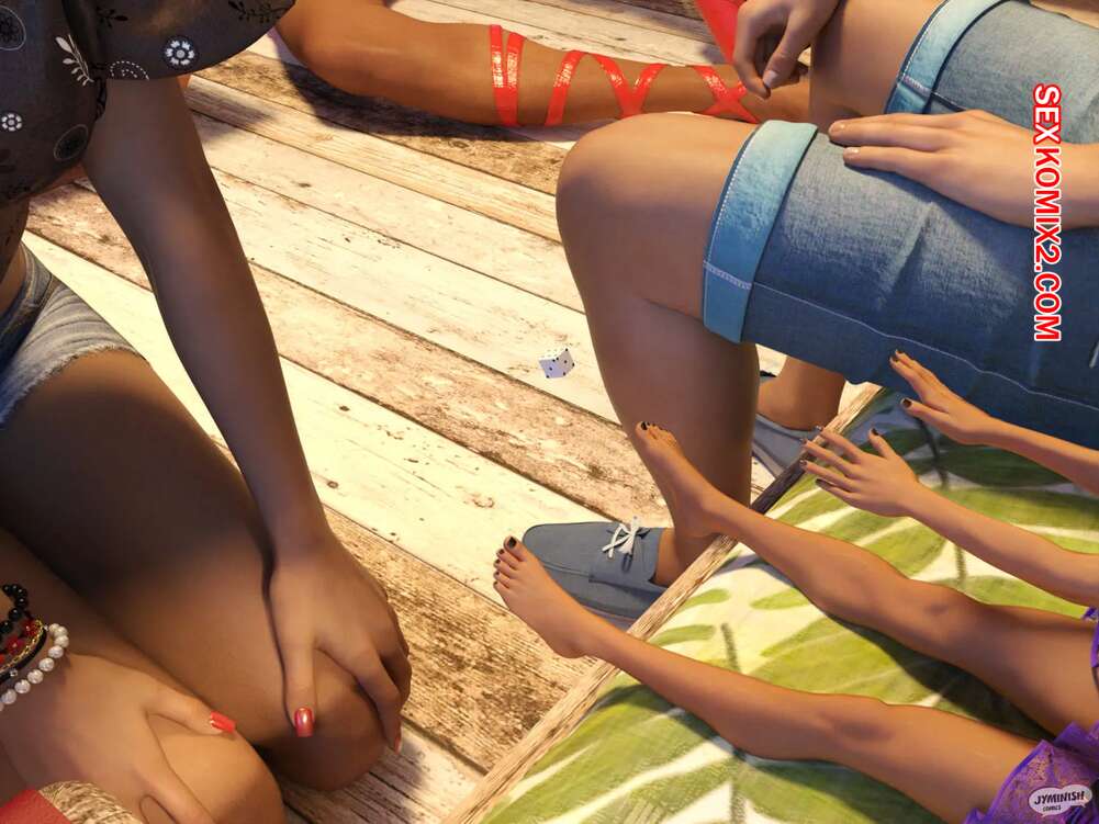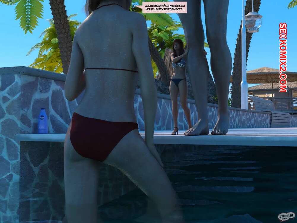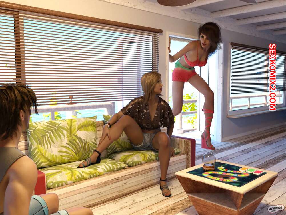 Порно комикс Игра побег. Часть 1.5. Escape Game. Jyminish Горячие красотки продолжают проводить время на курорте со своим дружком. Дела девушек меняются в размерах и они испытывают сильное возбуждение, поэтому проявляют внимание к своему дружку.