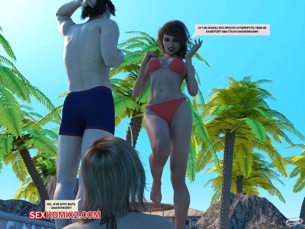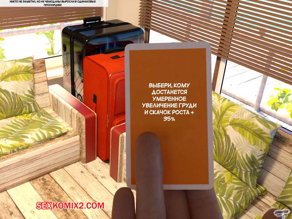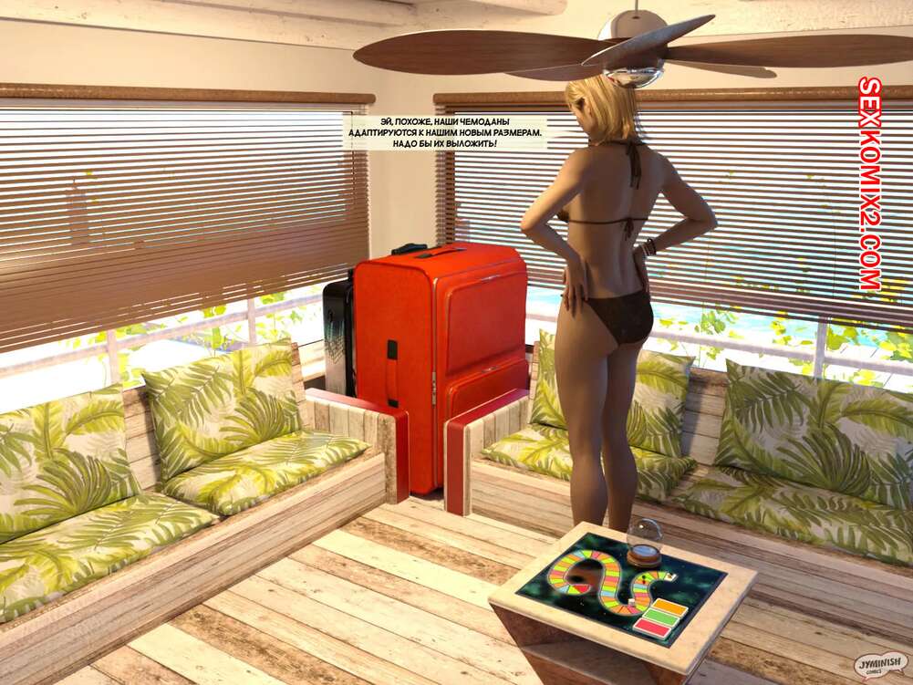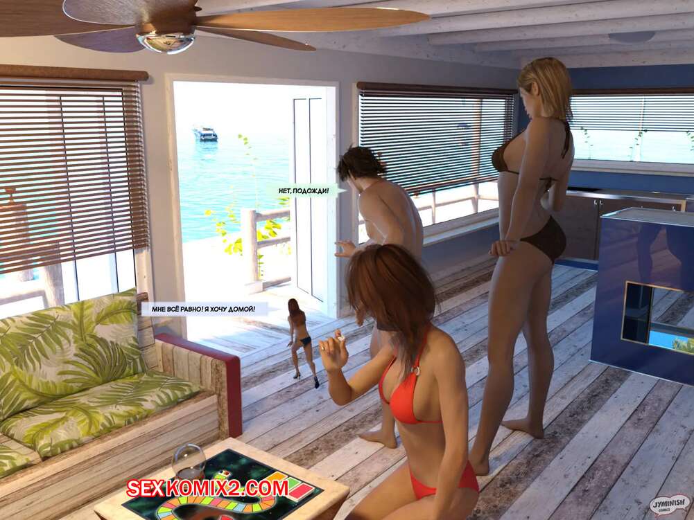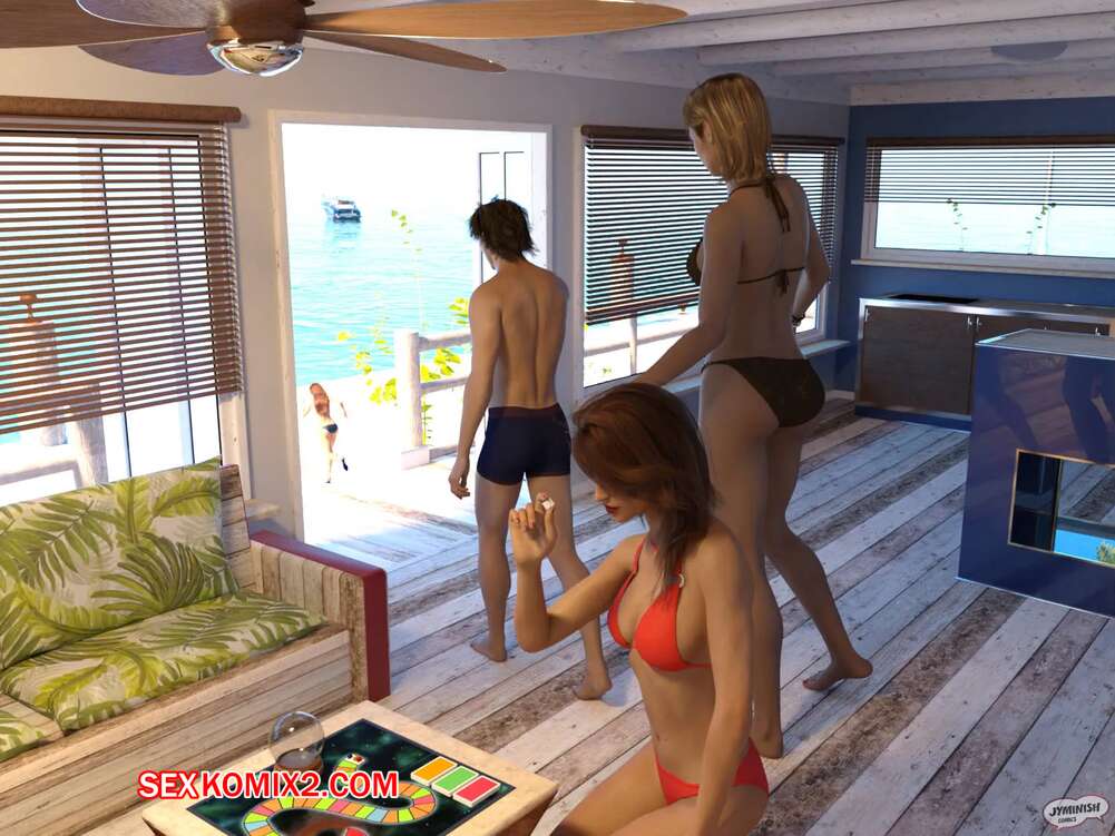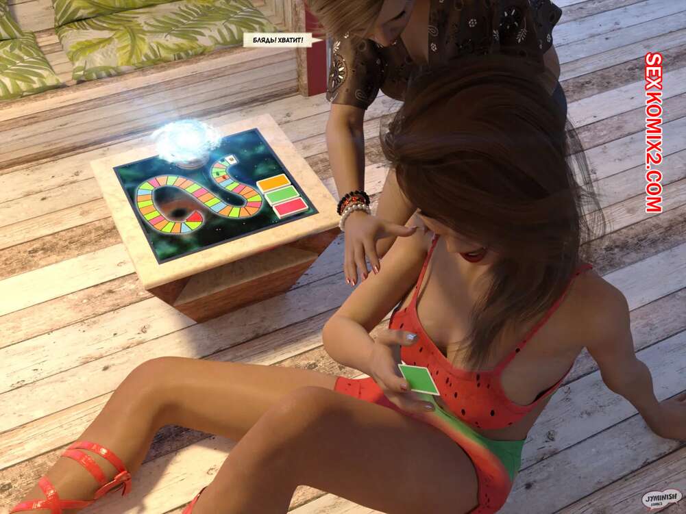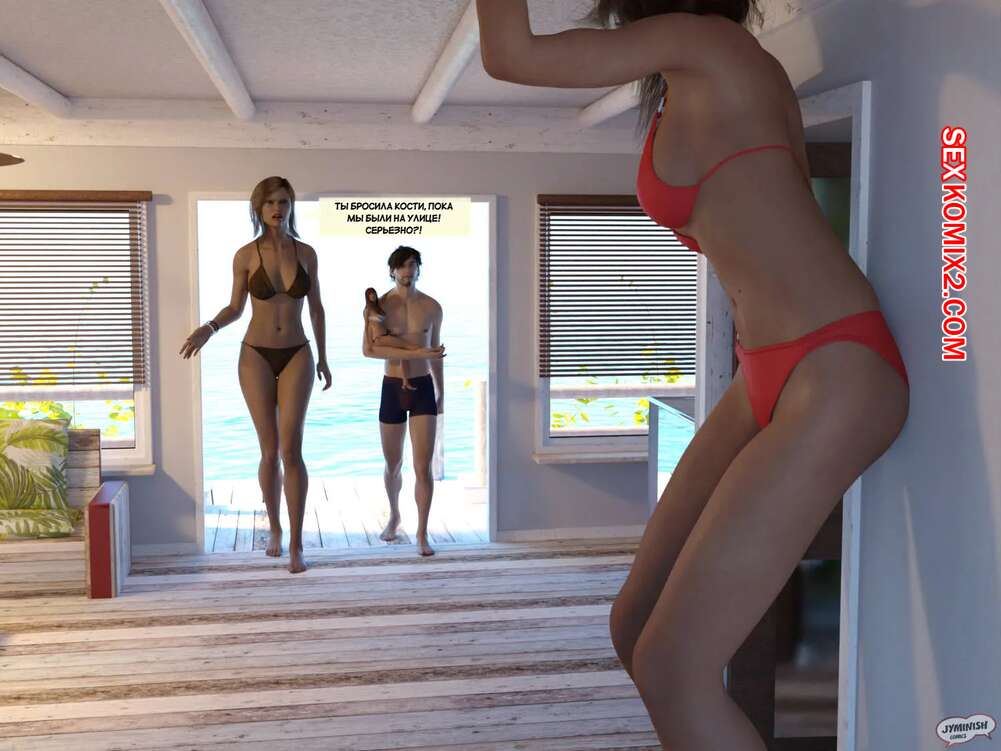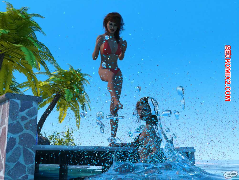 Порно комикс Игра побег. Часть 1.5. Escape Game. Jyminish Горячие красотки продолжают проводить время на курорте со своим дружком. Дела девушек меняются в размерах и они испытывают сильное возбуждение, поэтому проявляют внимание к своему дружку.