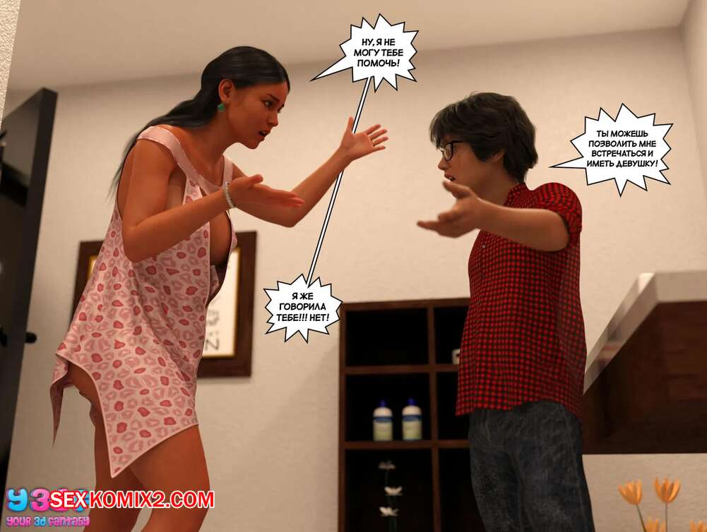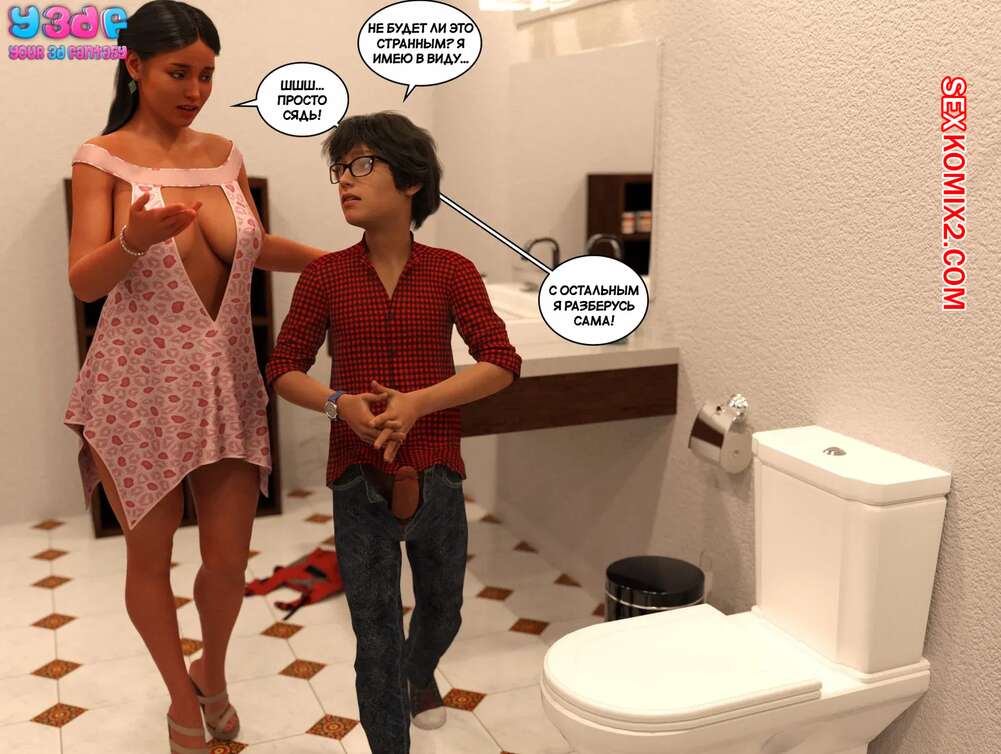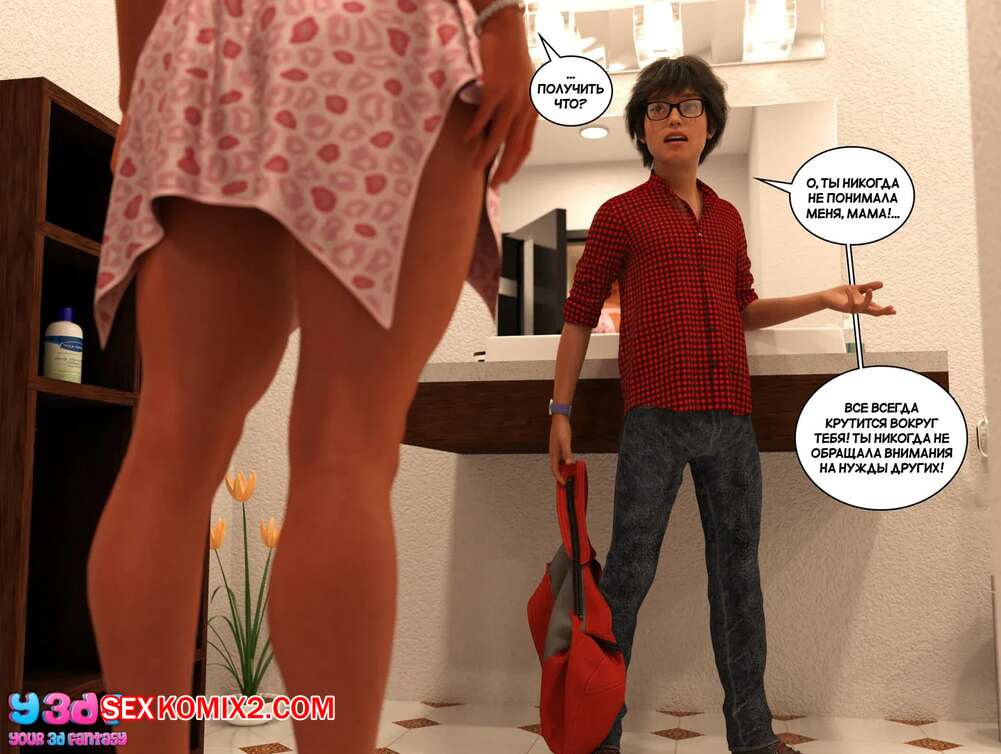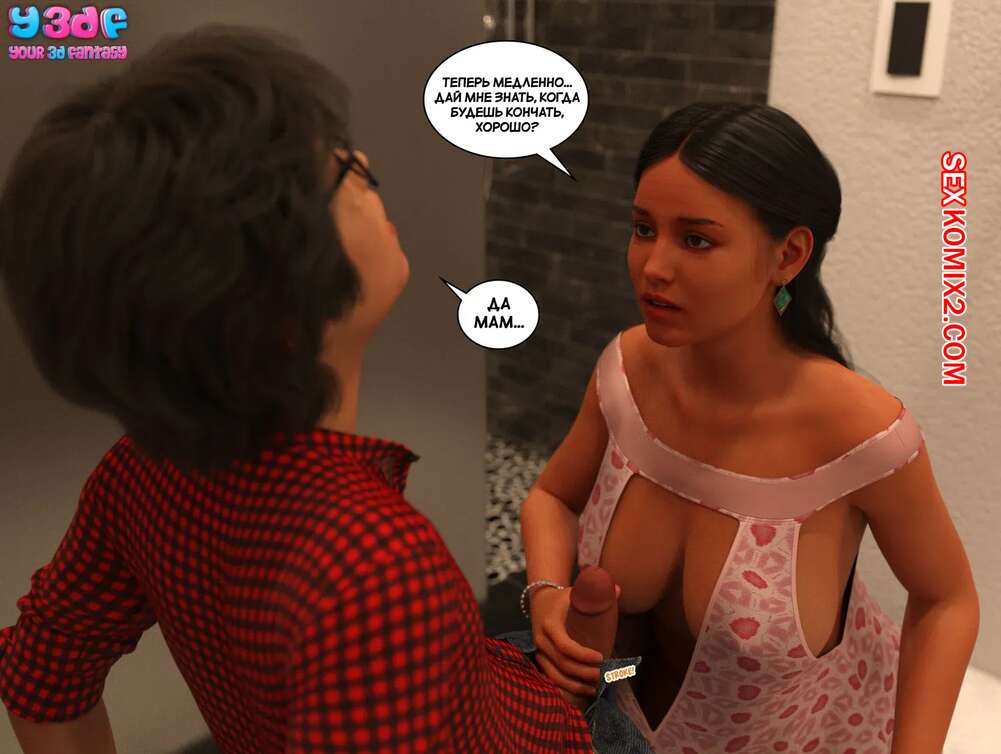 Порно комикс Трофейная мама. Часть 1. Trophy Mom. Y3DF. Молодой парень был очень возбужден и ему необходимо кончить. Он стал умолять свою горячую маму помочь ему, поэтому она встала на колени и отсосала хуй сын, после чего он кончил ей на лицо.