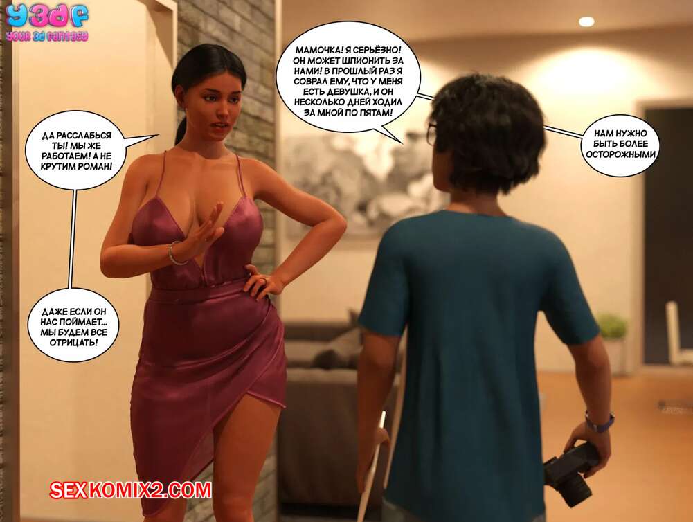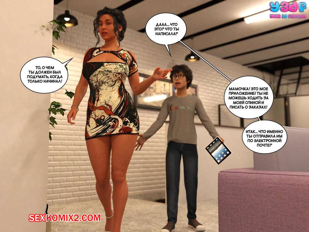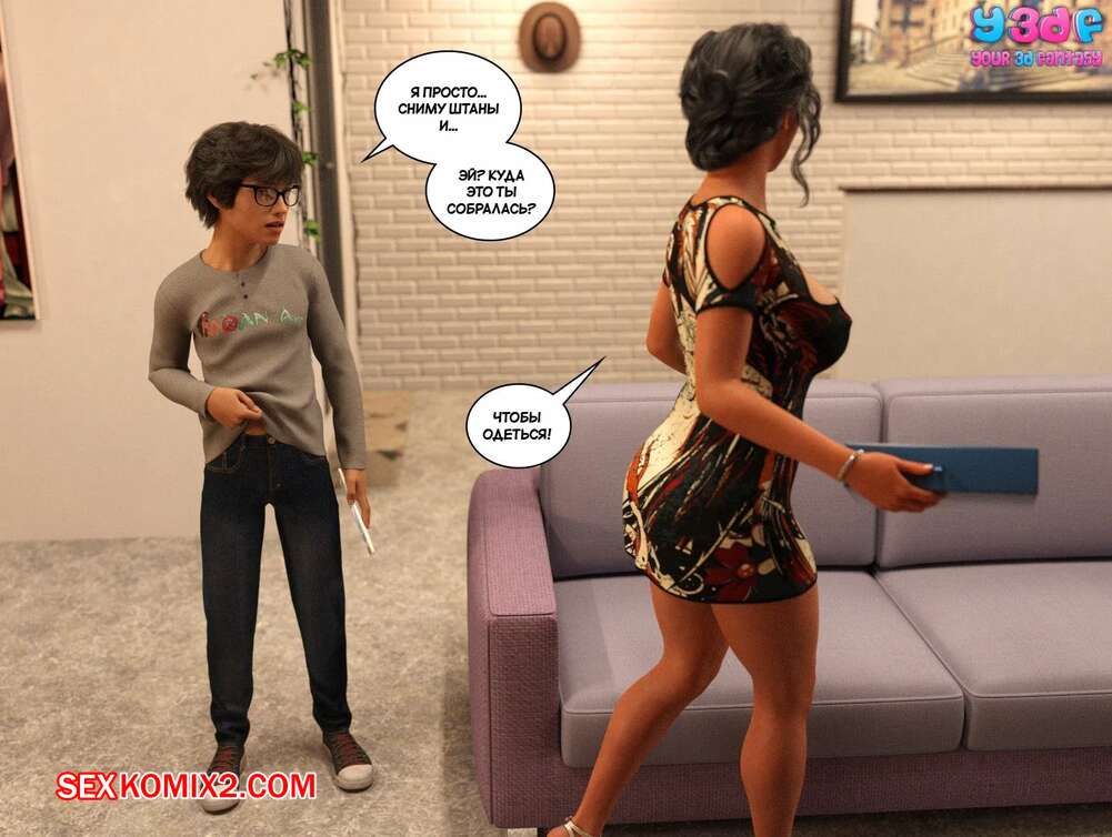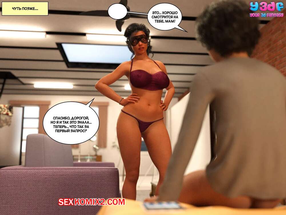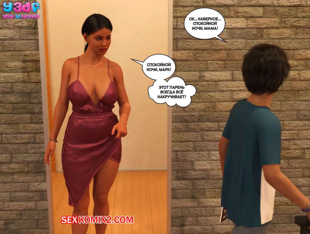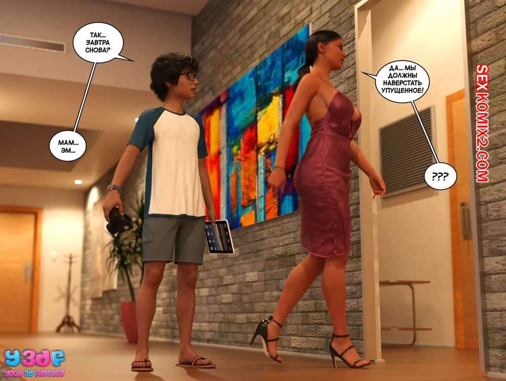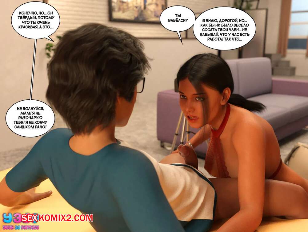 Порно комикс Трофейная мама. Часть 2. Trophy Mom. Y3DF Горячая милфа пригласила сына к себе в комнату и встретила его в сексуальном белье. Красотка уложила парня на кровать и стала сосать его большой член, после чего села на сына и помогла ему кончить.