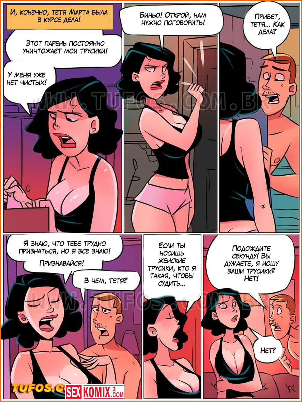 Порно комикс Дом мамы Джоаны. Часть 3. Трусики тети Марты. Парень частенько дрочит на нюхая трусики своей тети, он представляет, как трахает её. Но половину трусиков не возвращает. Когда женщина узнала, что парень ворует её трусики, то решила проучить сорванца.