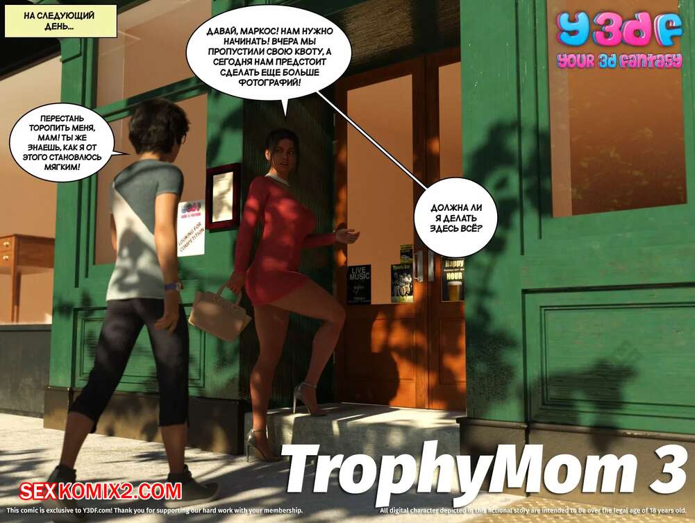 Порно комикс Трофейная мама. Часть 3. Trophy Mom. Y3DF Горячая милфа отправилась в мотель со своим сыном, чтобы повеселиться. Красотка разделась и отсосала большой хуй сына, после чего дала ему себя выебать, получив огромное удовольствие.