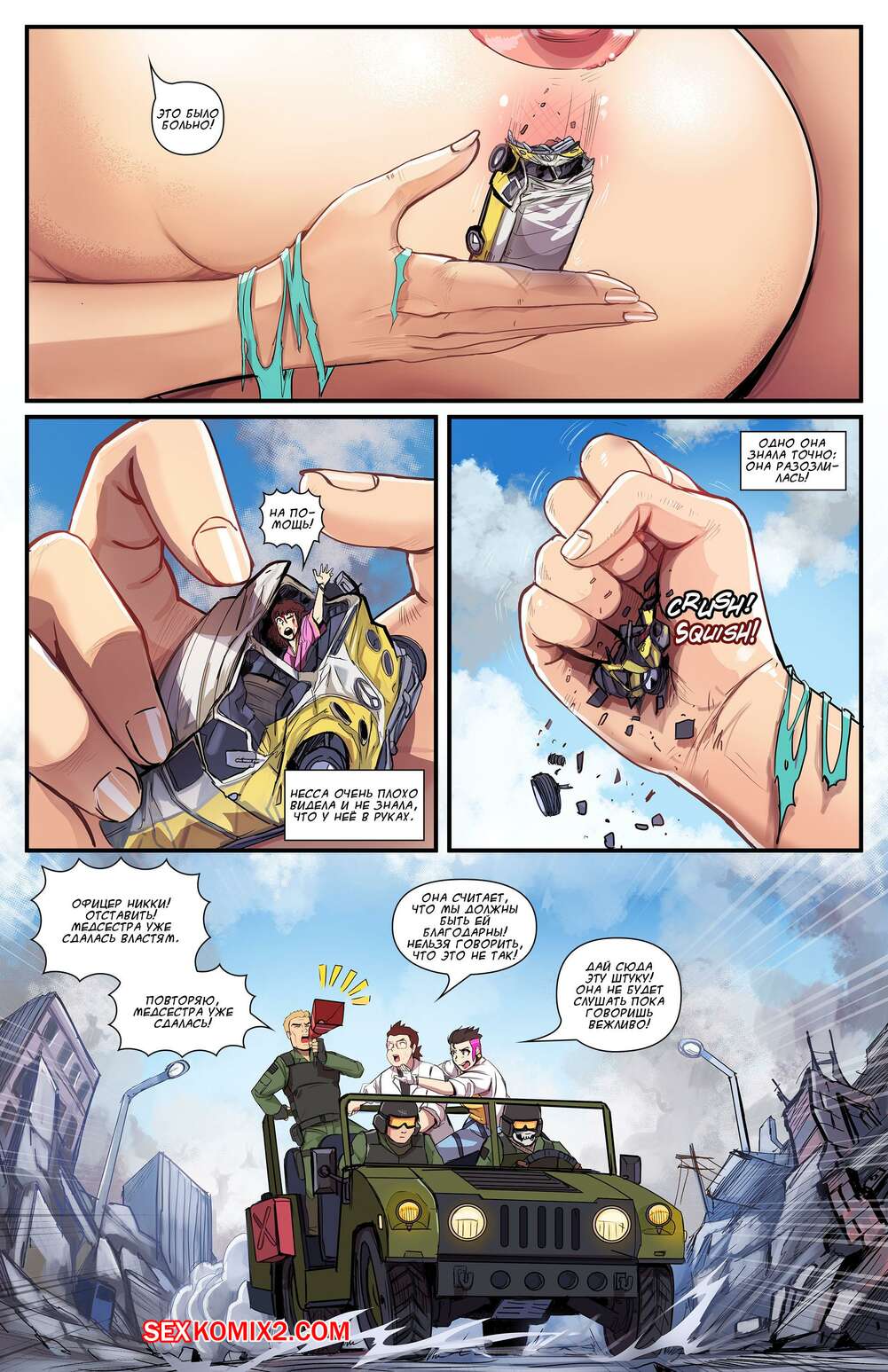 Порно комикс Если бы Несса встретила Никки. Часть 2. If Nessa mets Nikki. Sexplore Две горячие блондинки увеличились до огромных размеров, устроив в городе хаос. Красотки были очень возбуждены и стали бороться и ласкать друг дружку, получая огромное удовольствие.