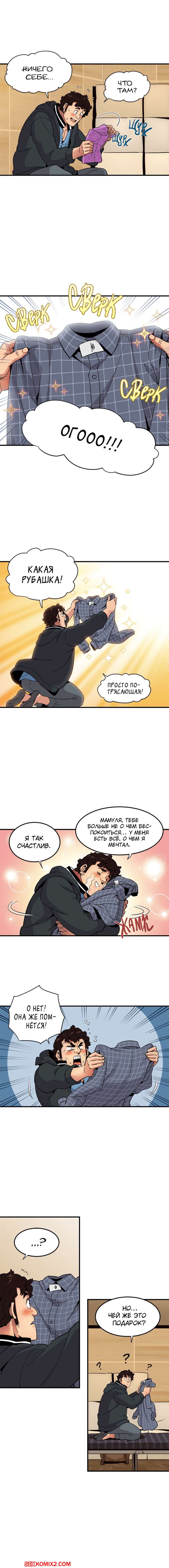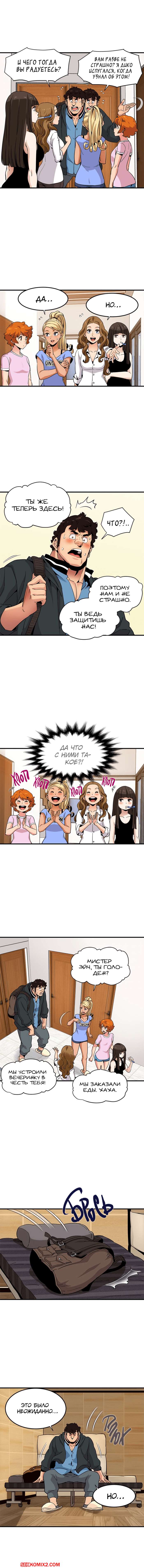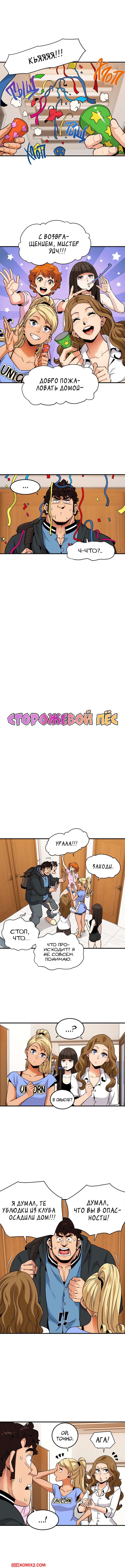 Порно комикс Сторожевой пес. Части 21 и 22 и 23. Dog on Patrol. Большой парень получил в подарок от девушек новую рубашку, ему очень понравился подарок. И весь следующий день он не снимал её.