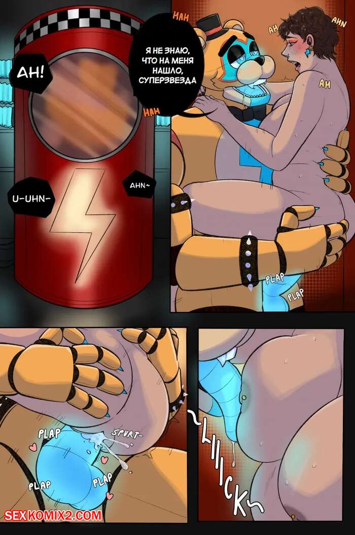 Порно комикс Пять ночей у Фредди. Fnaf art. Tiddieb0unce Горячая брюнетка с шикарным телом без ума от больших хуев аниматронных парней. Красотка раздевается и соблазняет парней своими прелестями, после чего дает им себя выебать во все дырочки.
