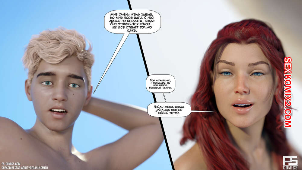 Порно комикс Нагишом. Нудистский курорт. Часть 23. Au Naturel. Pegasus Smith Дилан отдыхал на крыльце дома и к нему пришла рыжая красотка Эмили. Она напомнила парню, что он обещал ее оплодотворить. Келли услышала эти разговоры и это ее очень обеспокоило.