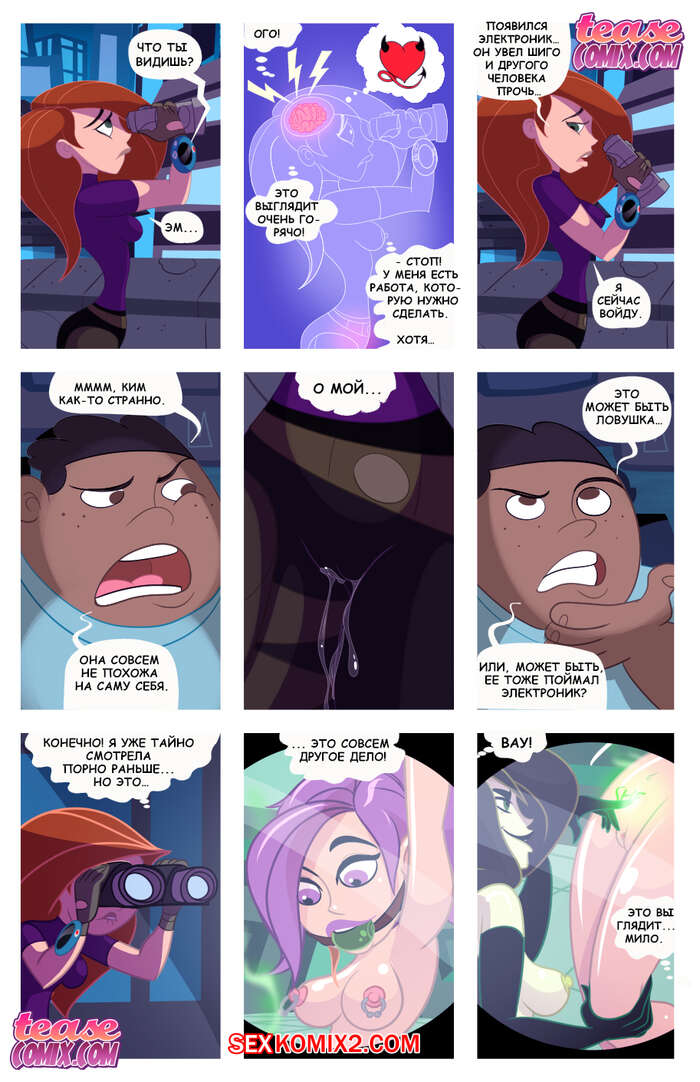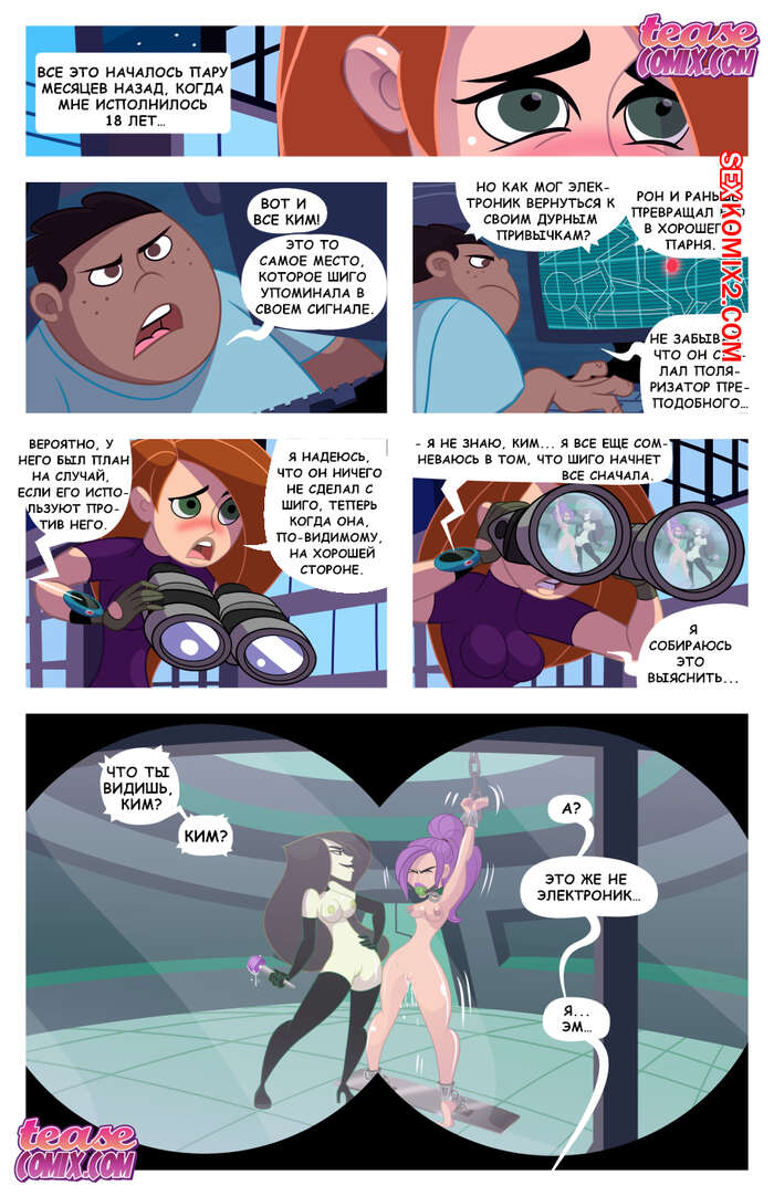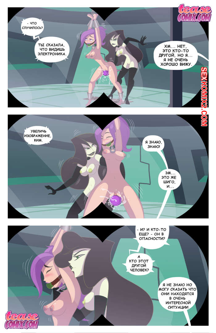 Порно комикс Ким пять с плюсом. Извращенная возможная сука злодея. Ким узнала сто её подруга попала к злодейки и она издевается над ней. И девушка агент разрабатывает план по спасения своей подруги.