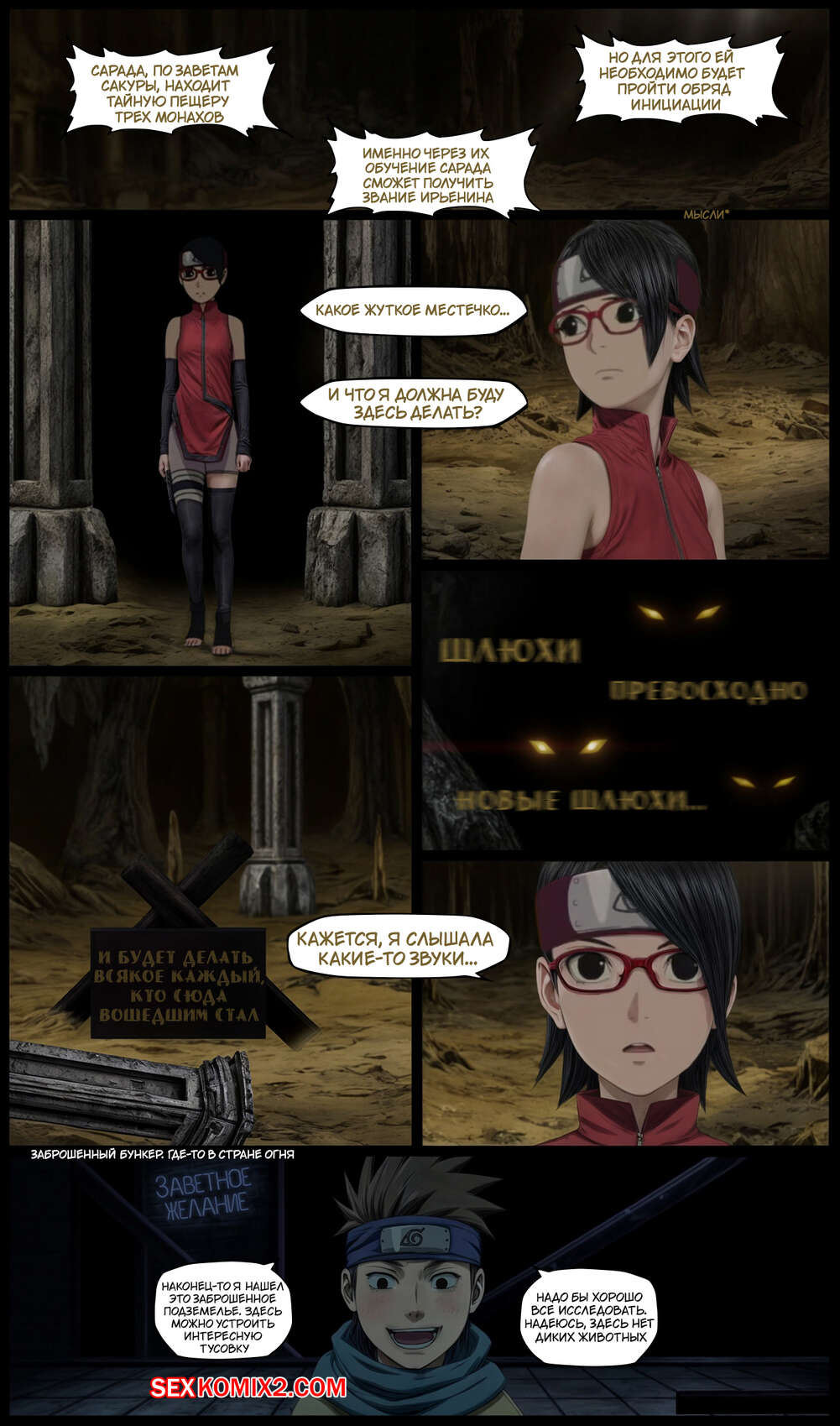 Порно комикс Наруто. Обряд Инициации. The Rite of Initiation. KristoLin Сарада находит тайную пещеру трех монахов, чтобы обучиться искусству Ирьенина, но ей предстоит пройти три нелегких испытания на прочность. Девушка демонстрирует свое тело, а после дает себя выебать различными приспособлениями.
