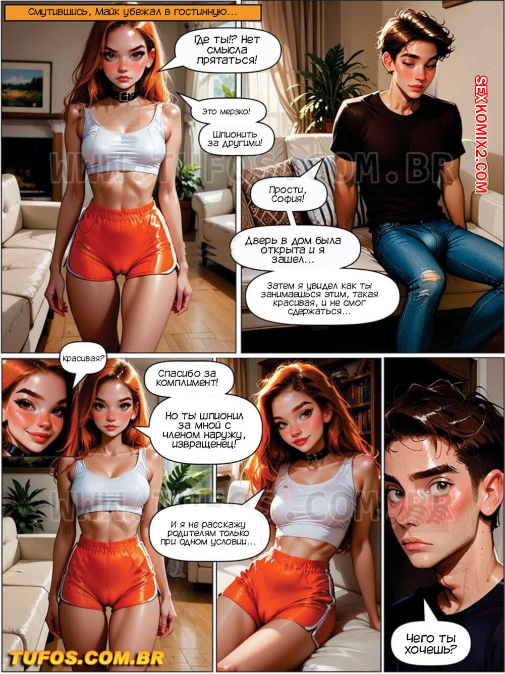 Порно комикс Наслаждение сумасшедшей жизнью. Часть 12. Tufos Майк вернулся в родной город спустя много лет и застал свою кузину за дрочкой и стал сам дрочить, глядя на нее. Девушка спалила кузена и решила отсосать его член, после чего дала ему себя выебать во все дырочки и кончить ей на лицо.