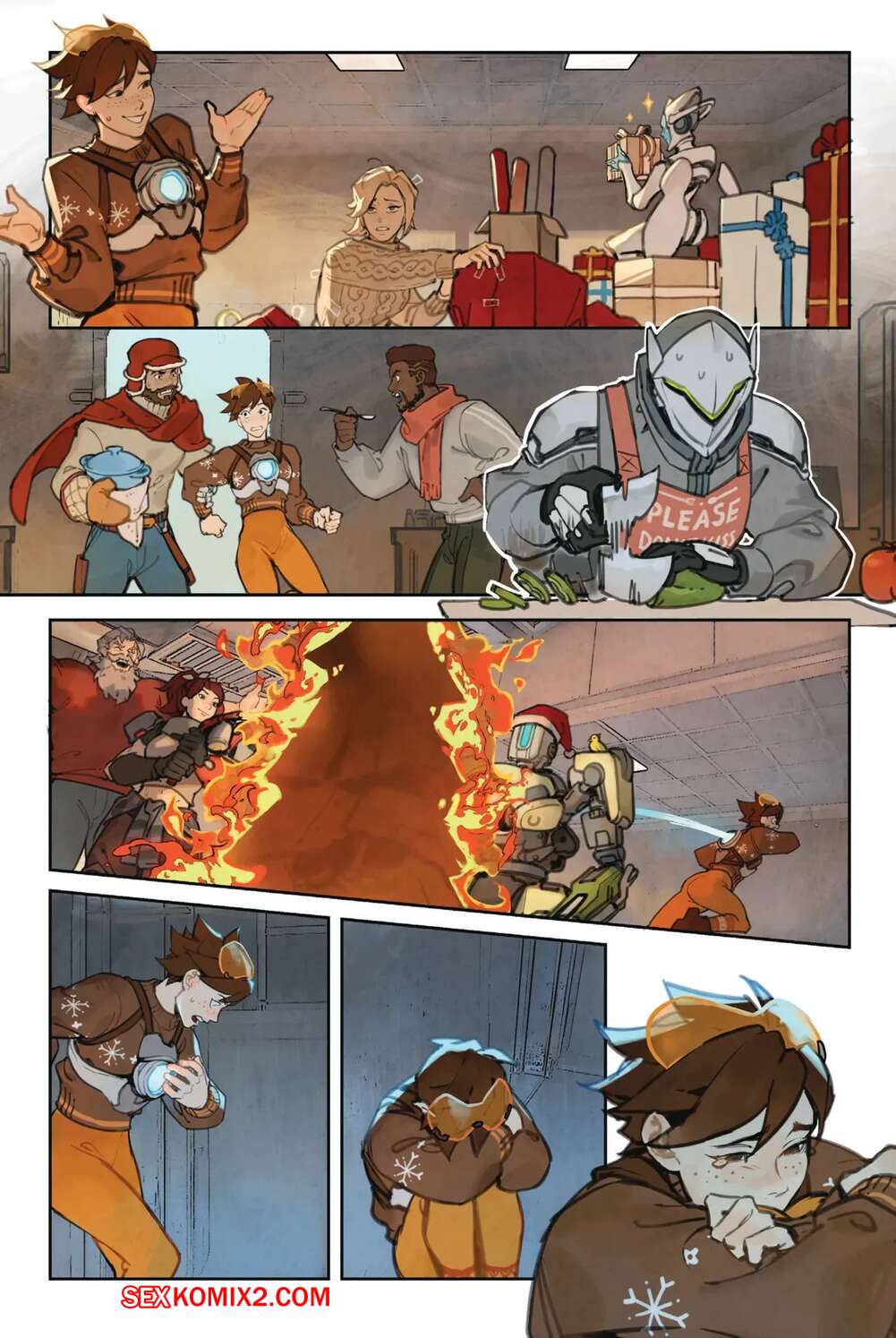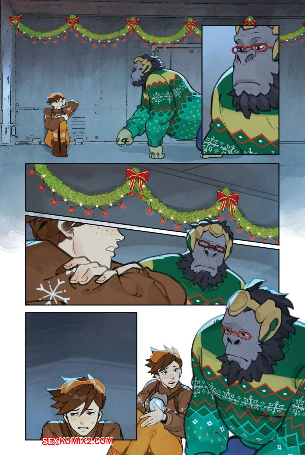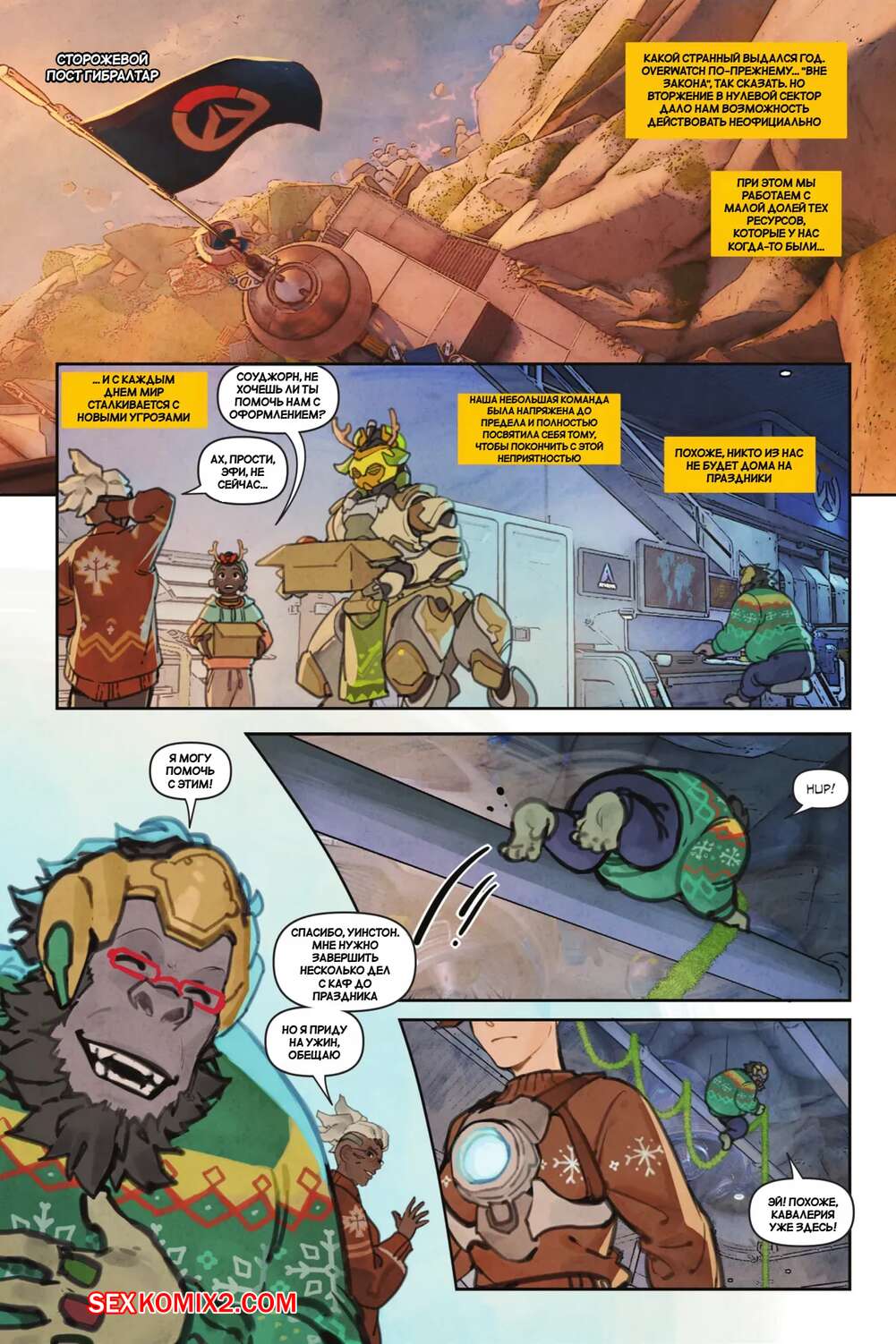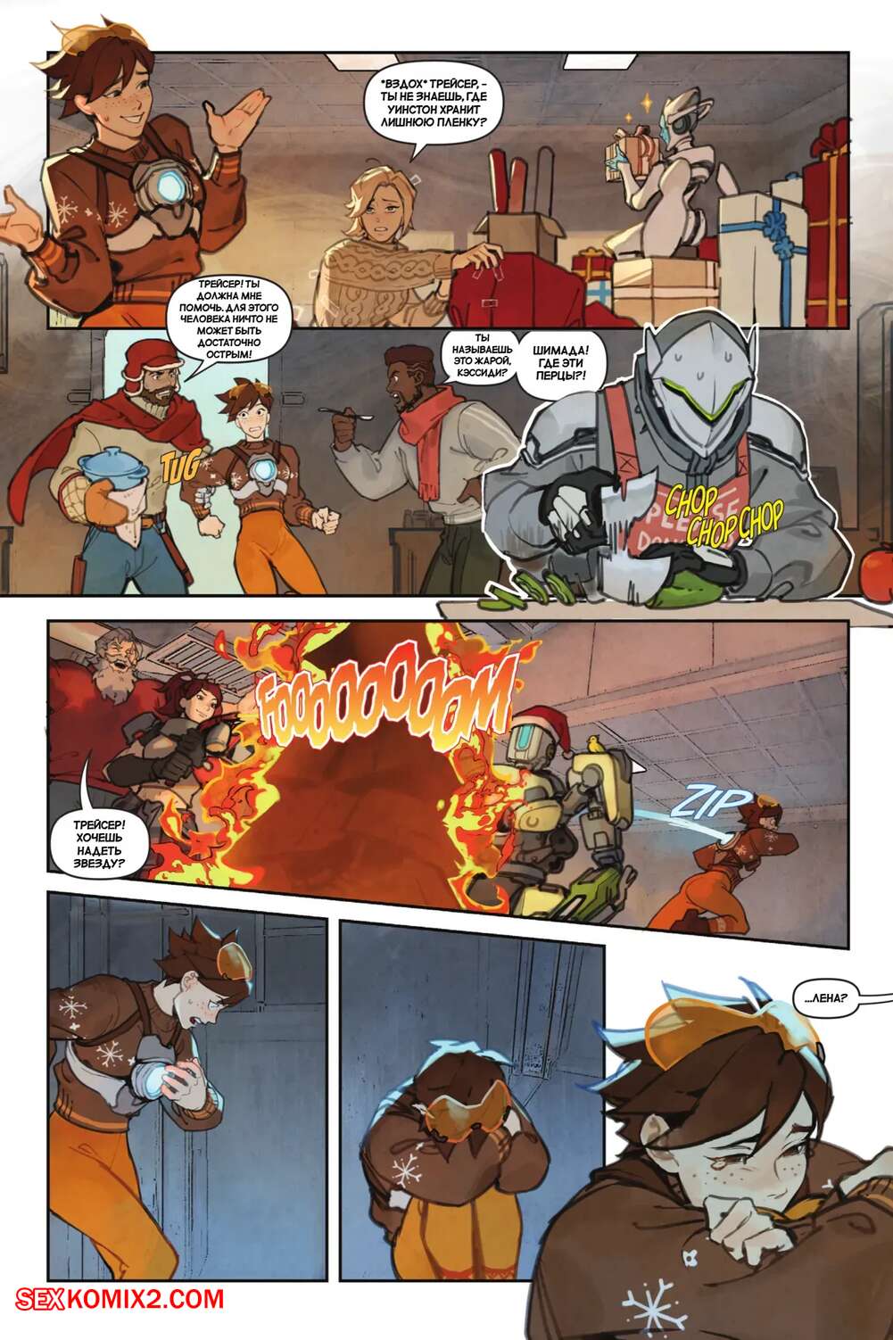 Порно комикс Overwatch. Вместе. Together. Sam King, Velinxi. На базе все готовяться украшением и подготовкой к Рождеству, только Трейсер занята другими делами. Наконец друзья смогли устроить праздник, после чего все отправились по своим комнатам.