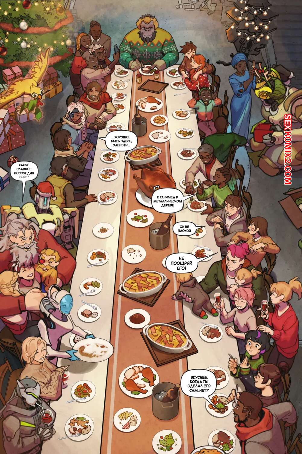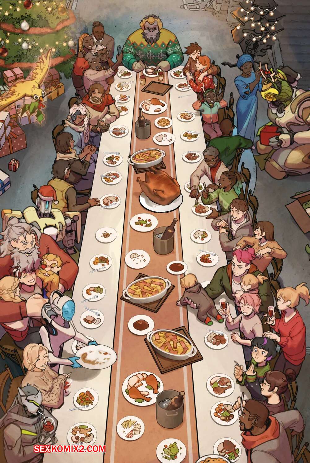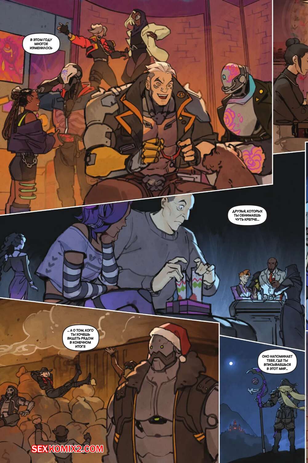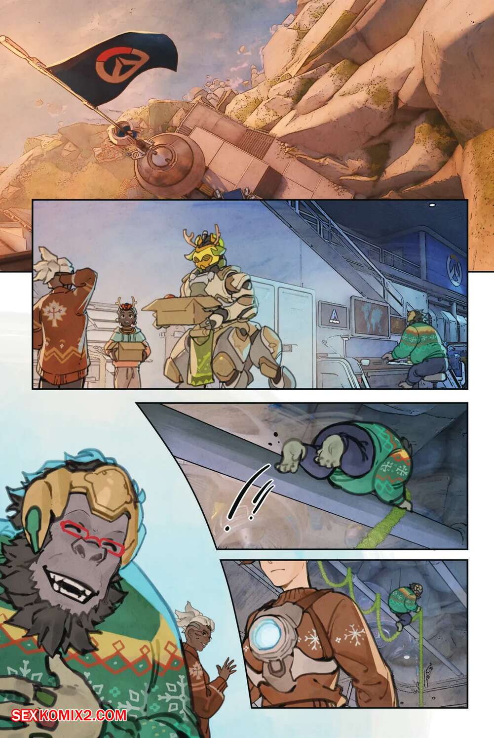 Порно комикс Overwatch. Вместе. Together. Sam King, Velinxi. На базе все готовяться украшением и подготовкой к Рождеству, только Трейсер занята другими делами. Наконец друзья смогли устроить праздник, после чего все отправились по своим комнатам.
