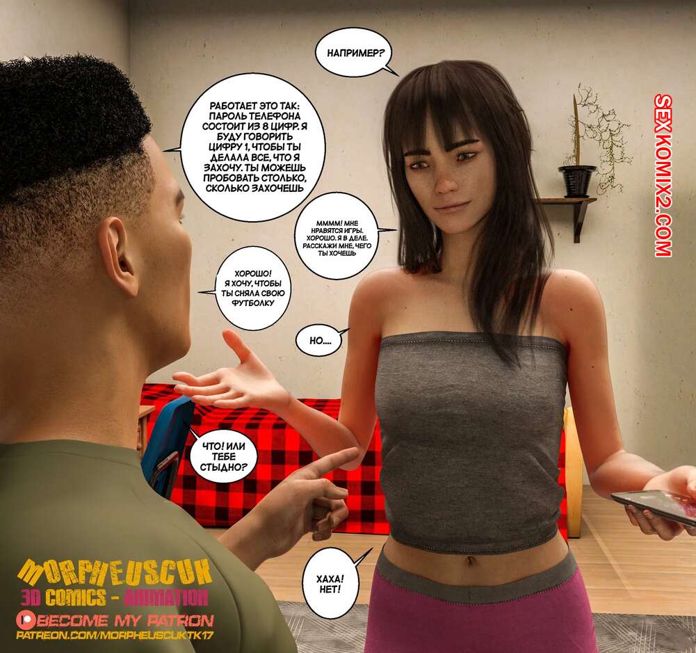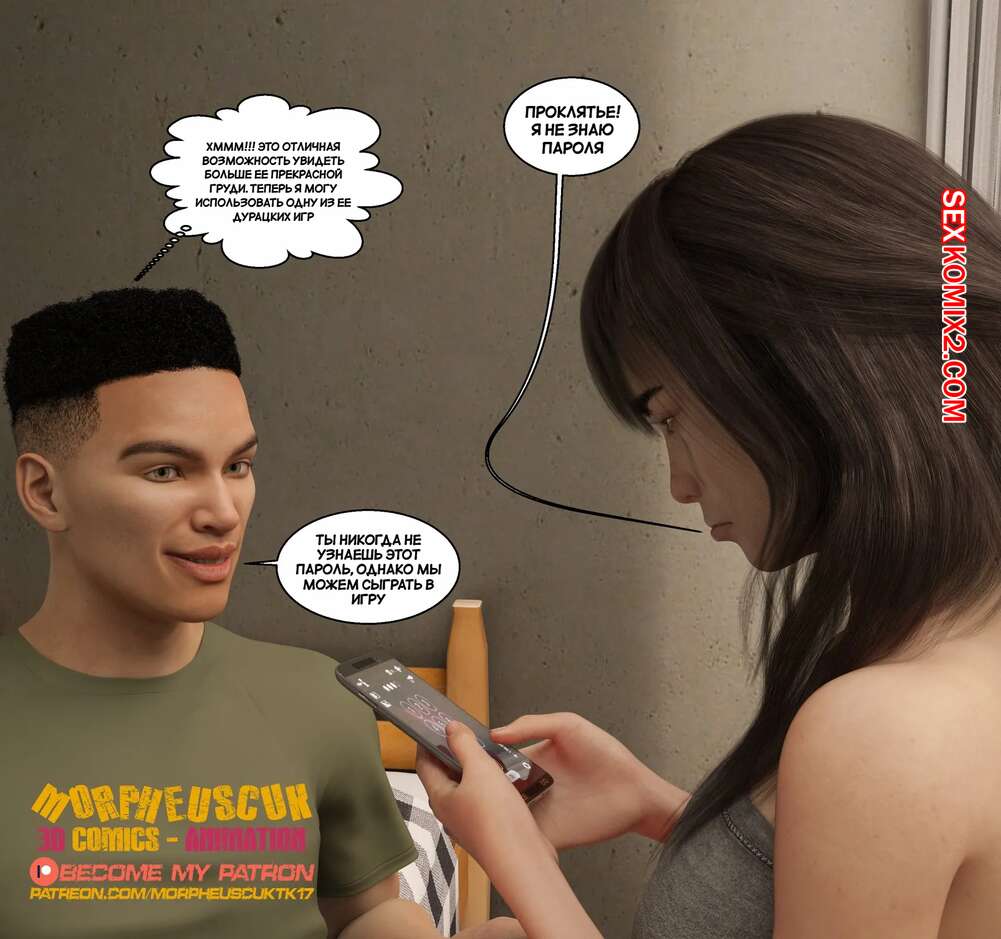 Порно комикс Бесстыдный. Часть 1. Shameless. Morpheuscuk Парень пробрался в дом к своей соседке милфе, чтобы сфотографировать ее голой, пока она спит. Фотографии парень показал своей девушке Адилин, а та взамен дала ему себя трахнуть.