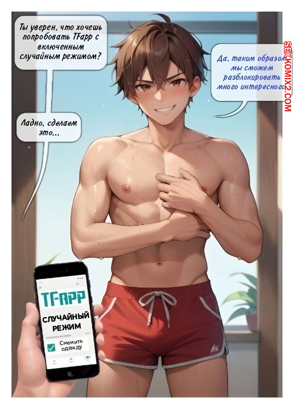 Порно комикс TF app. Biohazardry Два друга решили повеселиться и воспользоваться особым приложением. Один из парней превратился в сексуальную брюнетку бимбо и отсосала хуй друга, после чего дала ему себя выебать.