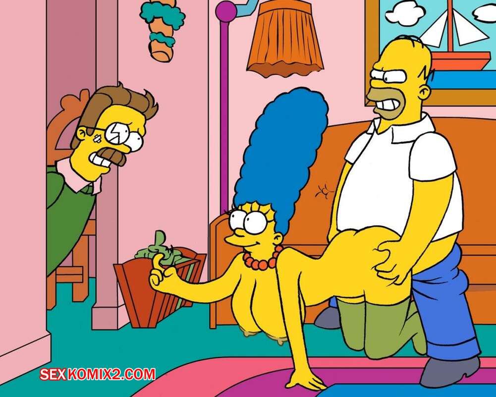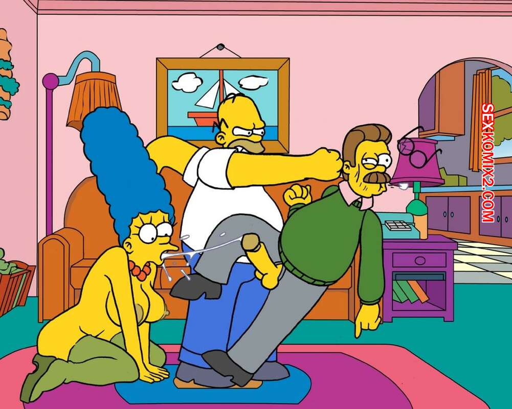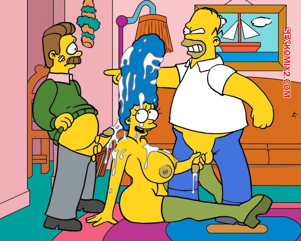 Порно комикс Симпсоны. Вторжение Фландерса 1. Akabur Горячая милфа Мардж решила повеселиться с Фландерсом в присутствии ее мужа. Красотка встала на колени и стала сосать хуй соседа, но Гомеру это совсем не понравилось.
