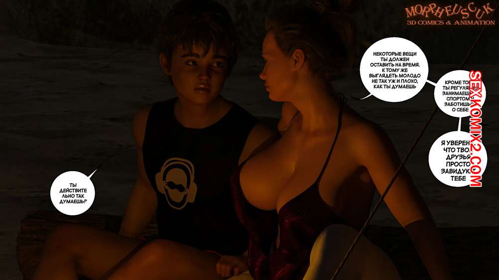 Порно комикс Затерянный остров. Часть 1. Lost Island. Morpheuscuk. Горячая милфа со своим сыном потерпели крушение и оказались на необитаемом острове. Красотка решила снять напряжение и пошла искупаться, а ее сын наблюдал за ней и дрочил свой член.
