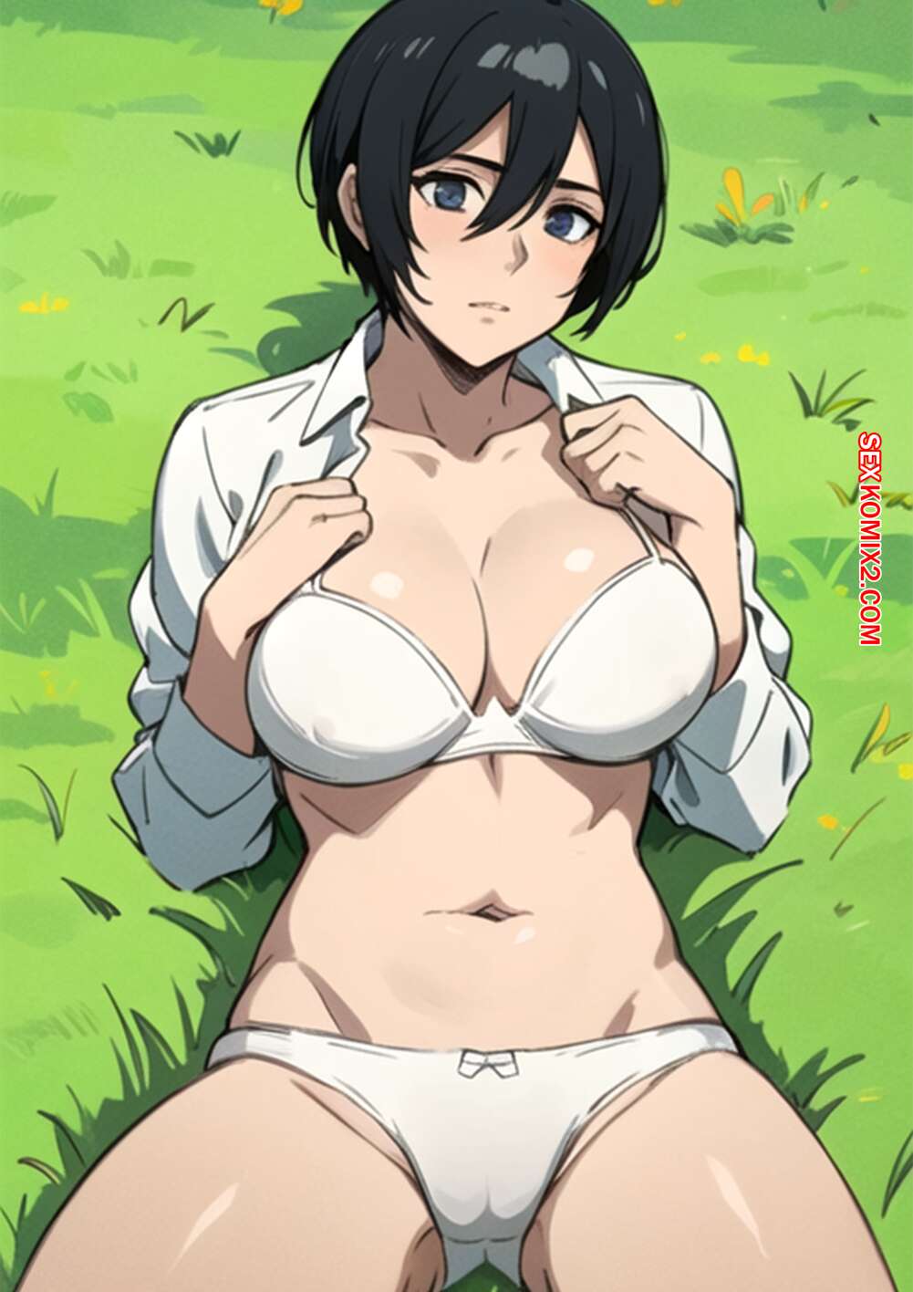 Порно комикс Mikasa in the meadow. Kahoo Горячая красотка Микаса была очень возбуждена и решила повеселиться со своим дружком. Девушка раздвинула ножки и дала парню себя выебать, заполняя ее горячей спермой.