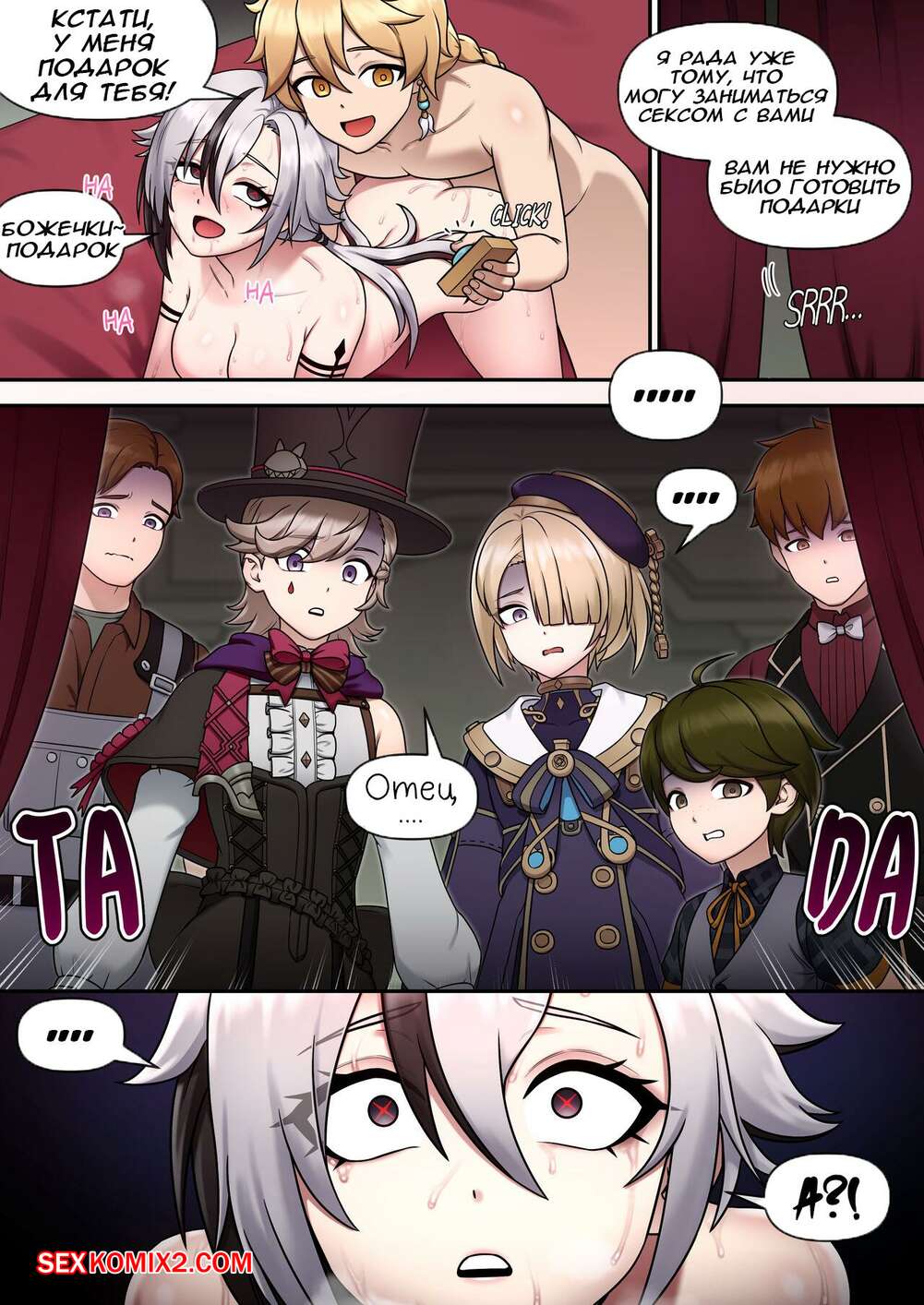 Порно комикс Genshin Impact. Спор. Mackgee Парень с девушкой заключили спор и решили выяснить кто больше выдержит еблю. Девушка разделась и раздвинула ножки перед парнем, после чего он безустанно стал ее ебать.