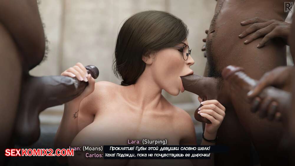 Порно комикс Tomb Raider. Похотливые приключения Лары. Часть 3. Laras Lustful Adventure. Rro.lled Горячая красотка Лара добралась до дворца и теперь ей предстоит выполнить брачный ритуал. Красотка встала на колени и отсосала хуи черных парней, после чего дала им себя выебать.