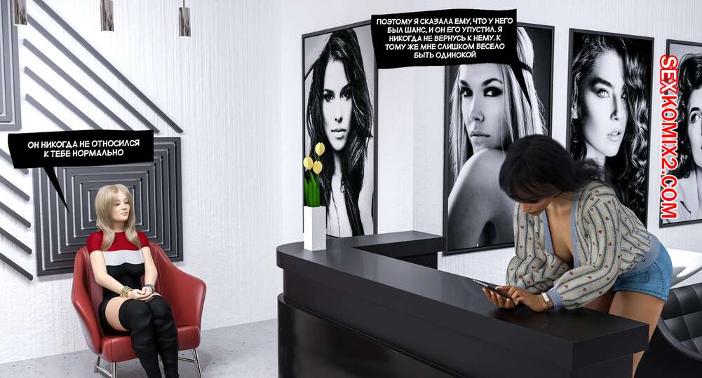 Порно комикс Фотосессия. История измены. Часть 3. Infidelity Stories. The Photoshoot Две горячие подруги отправились в тренажерный зал. Там блондиночка стала засматривать на темнокогожего парня и представлять в себе его большой хуй, желая снять наконец сексуальное разочарование.