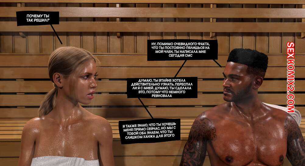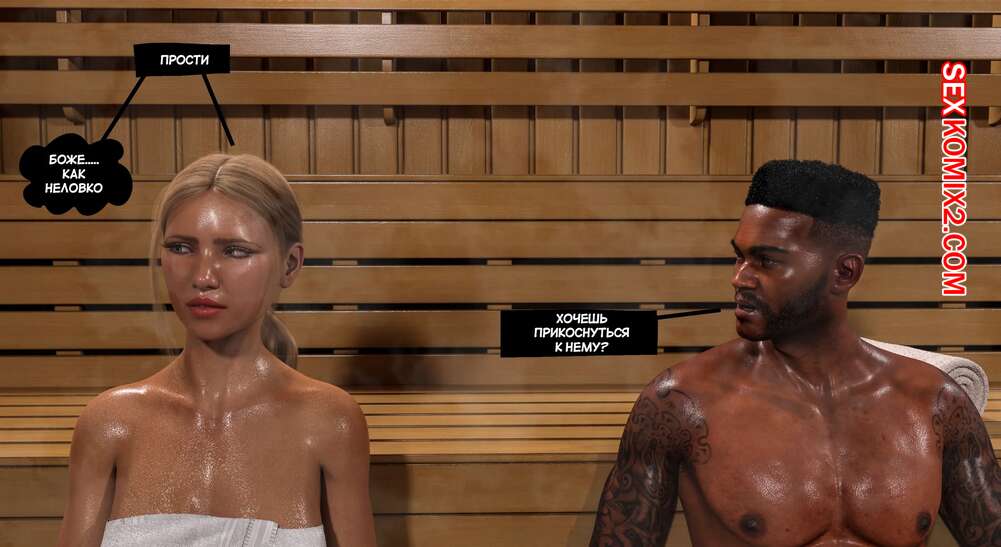 Порно комикс Фотосессия. История измены. Часть 4. Infidelity Stories. The Photoshoot После тренировки горячая блондинка оказалась в сауне наедине с темнокожим парнем. Девушка скинула с себя одежду и стала сосать большой черный хуй парня, желая получить его горячую сперму.