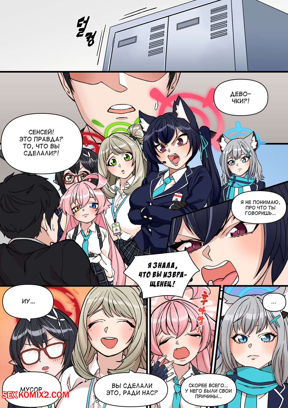 Порно комикс Blue Archive. Abydos Sexual Task Force. Bluecandy Горячие красотки просто без ума от своего молодого учителя. Девушки раздеваются и сосут большой хуй парня, после чего дают ему себя хорошенько выебать, получая огромное удовольствие.