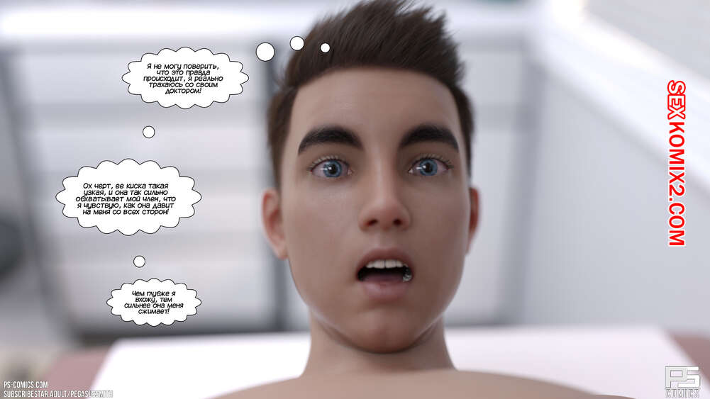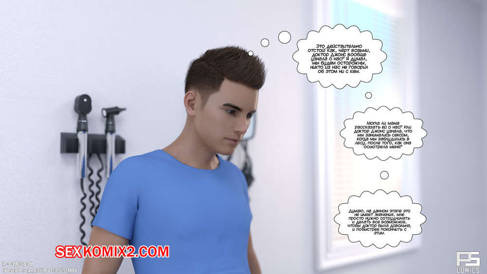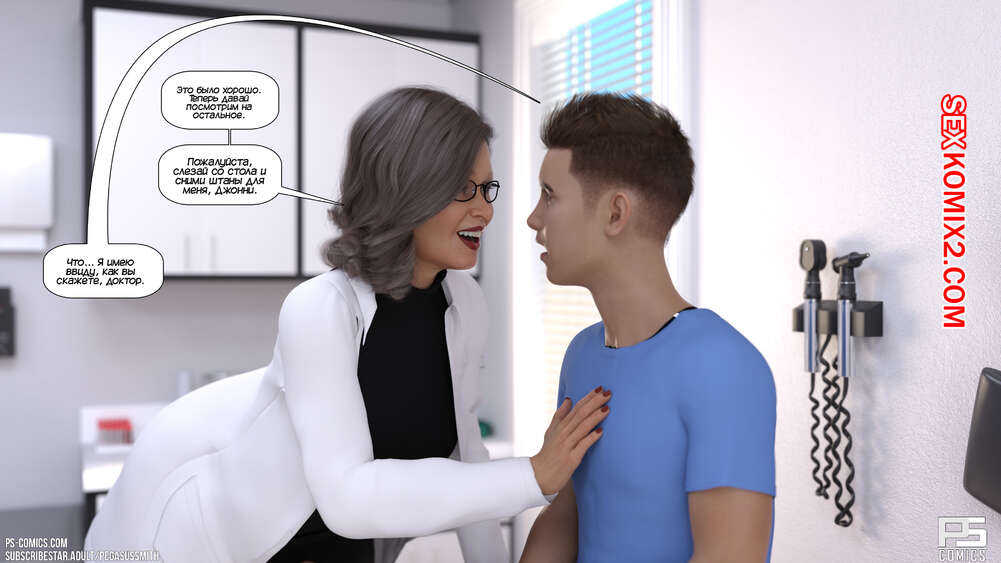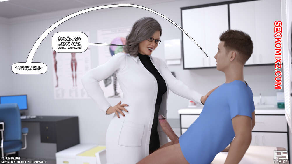 Порно комикс Заблудившиеся в лесу. Часть 6. Lost In The Woods. Pegasus Smith Джонни отправился в больницу, чтобы доктор Джонс осмотрела его укус. Красотка сказала парню снять штаны и очень возбудилась, увидев ее стояк. Милфа доктор думает воспользоваться моментом и насладиться молодым энергичным членом.