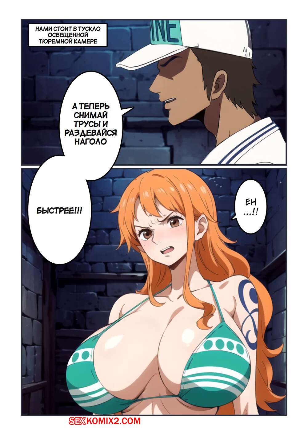 Порно комикс One Piece. Морская ловушка. Marine Trap. Kahoo Рыжая красотка Нами попала в тюрьму и парень решил воспользоваться моментом. Он приказал девушке встать на колени и отсосать его член, после чего хорошенько ее выебал и заполнил красотку своей спермой.
