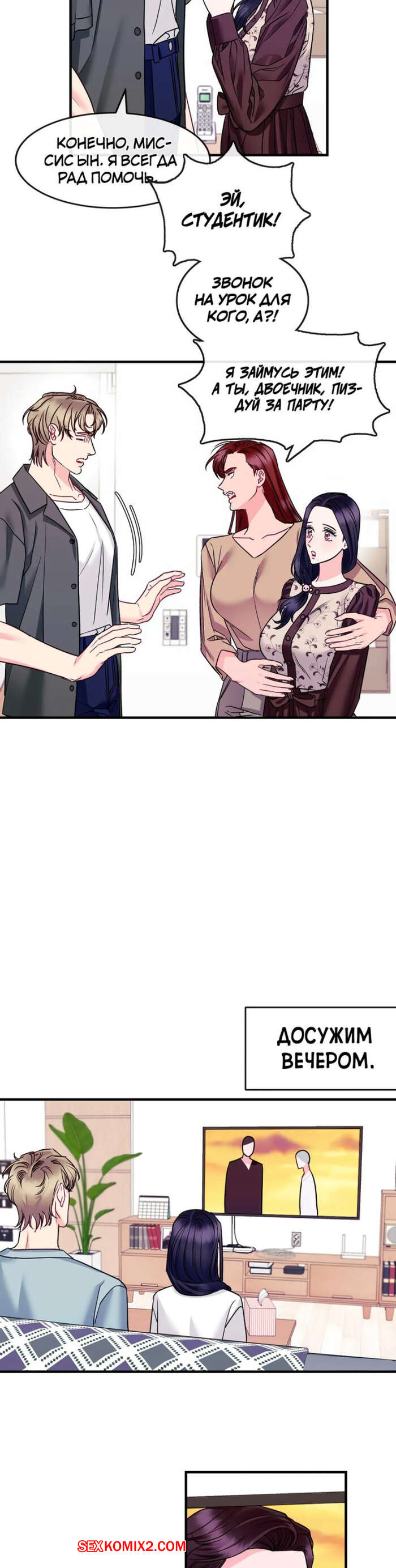 Порно комикс Дом любви. Часть 7 и 8 и 9. leobeu hauseu Горячая милфа была очень возбуждена и решила повеселиться с молодым парнем, который арендует у нее комнату. Красотка надела сексуальное белье и пригласила парня к себе, чтобы он ее хорошенько выебал.