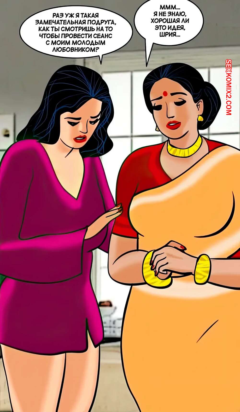 Порно комикс Веламма. Часть 22. Velamma. Velamma Горячие милфы были очень возбуждены и решили повеселиться с парнем. Они разделись и отсосали большой хуй паренька, после чего дали ему себя хорошенько выебать.