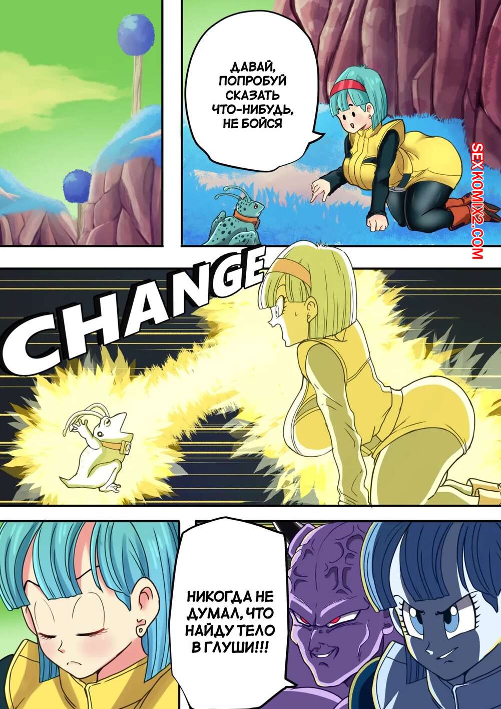 Порно комикс Dragon Ball. Обмен телами. Body Change. tsfsingularity. Парни вселяются в тела горячих красоток и решают воспользоваться моментом по полной. Девушки раздеваются и ласкают свои пизденки, получая невероятное удовольствие.