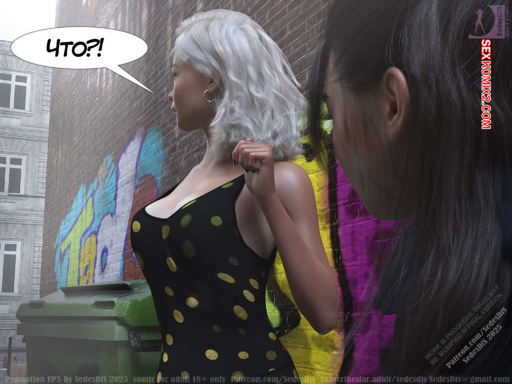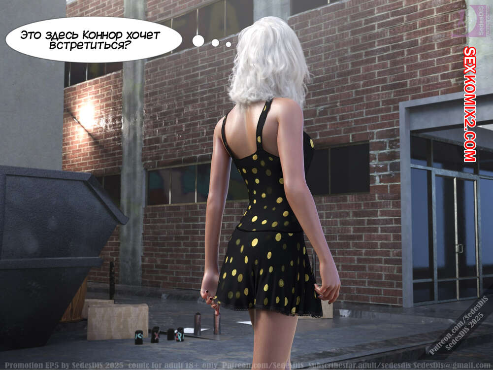 Порно комикс Повышение. Promotion. Часть 5. SedesDiS Горячая блондинка отправилась на встречу с Коннором. Красотка надела сексуальное платье и каблуки и пришла в переулок, где встретила парня, который прятался в темноте.