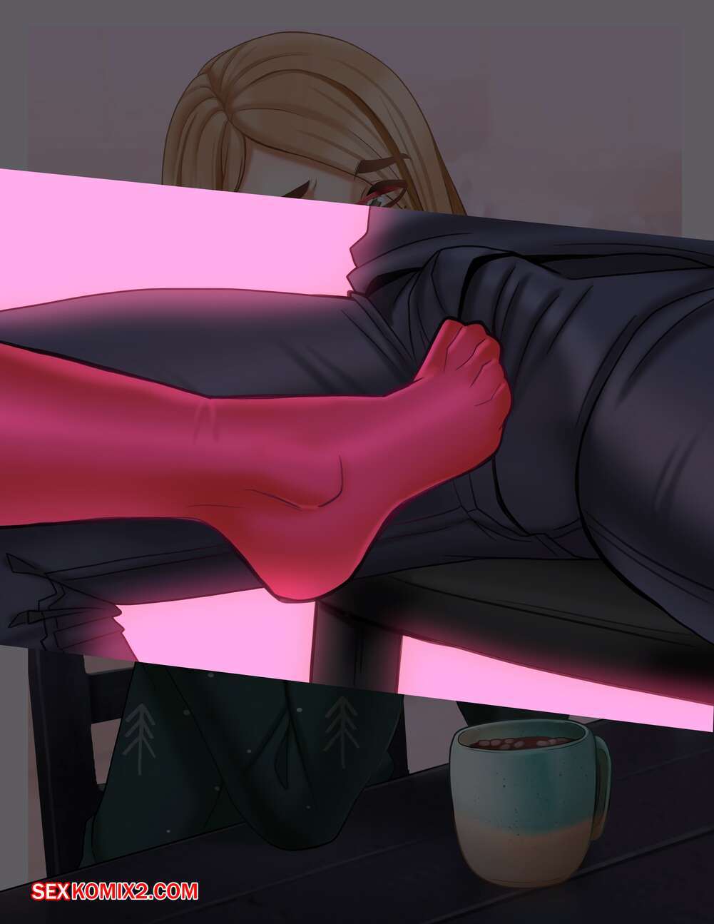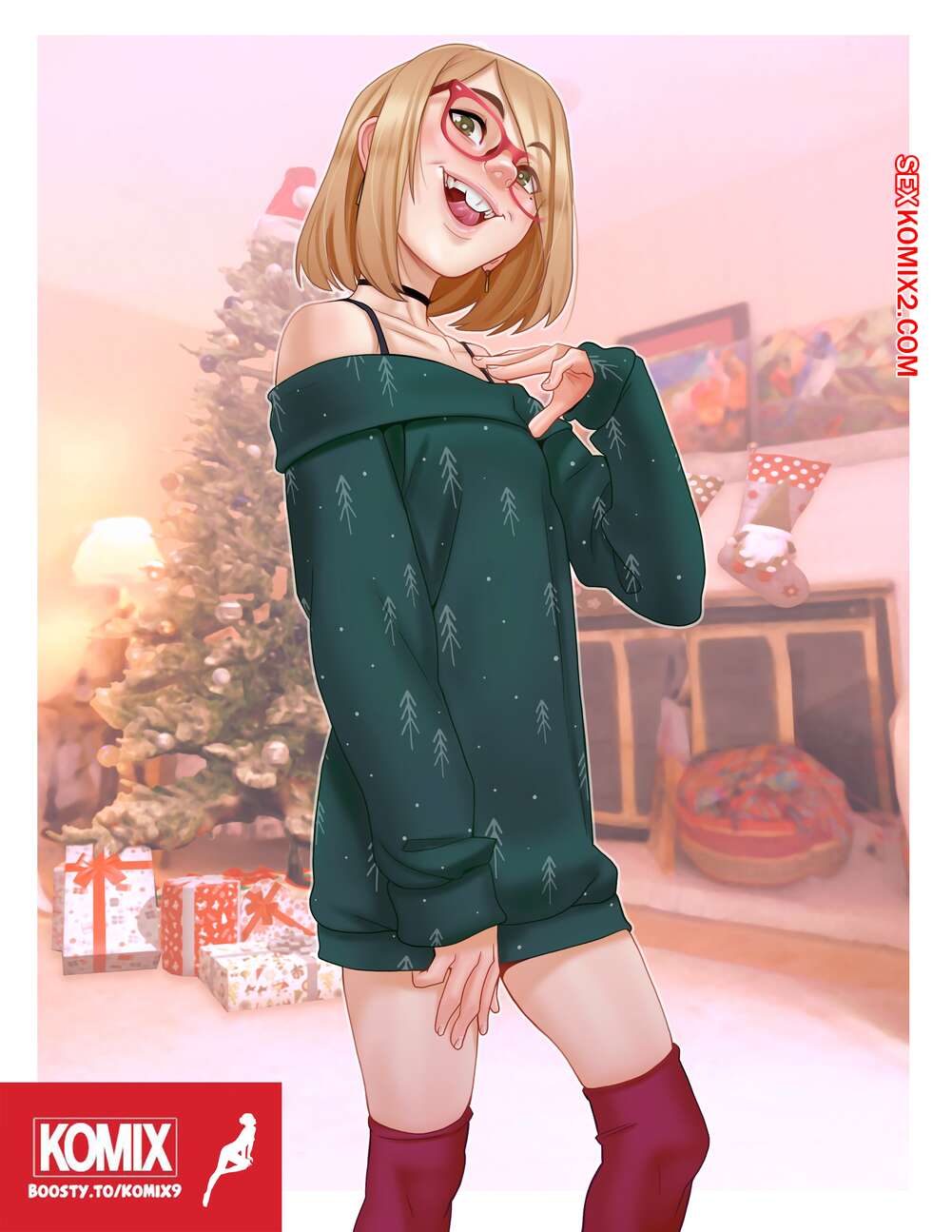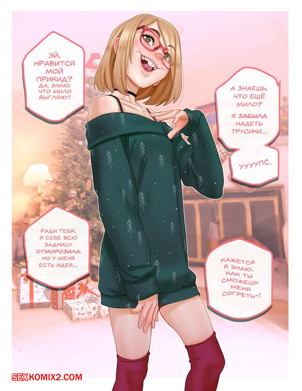 Порно комикс Рождество с Дарси. Andava Горячая блондинка была очень возбуждена и решила повеселиться со своим дружком. Она стала дрочить его хуй ножками, после чего отсосала хуй парня и дала себя выебать.