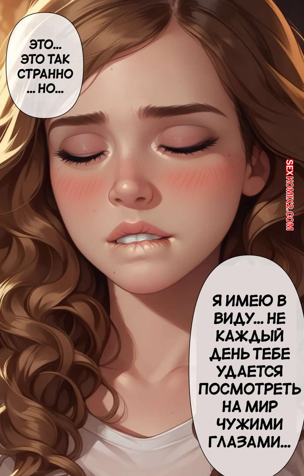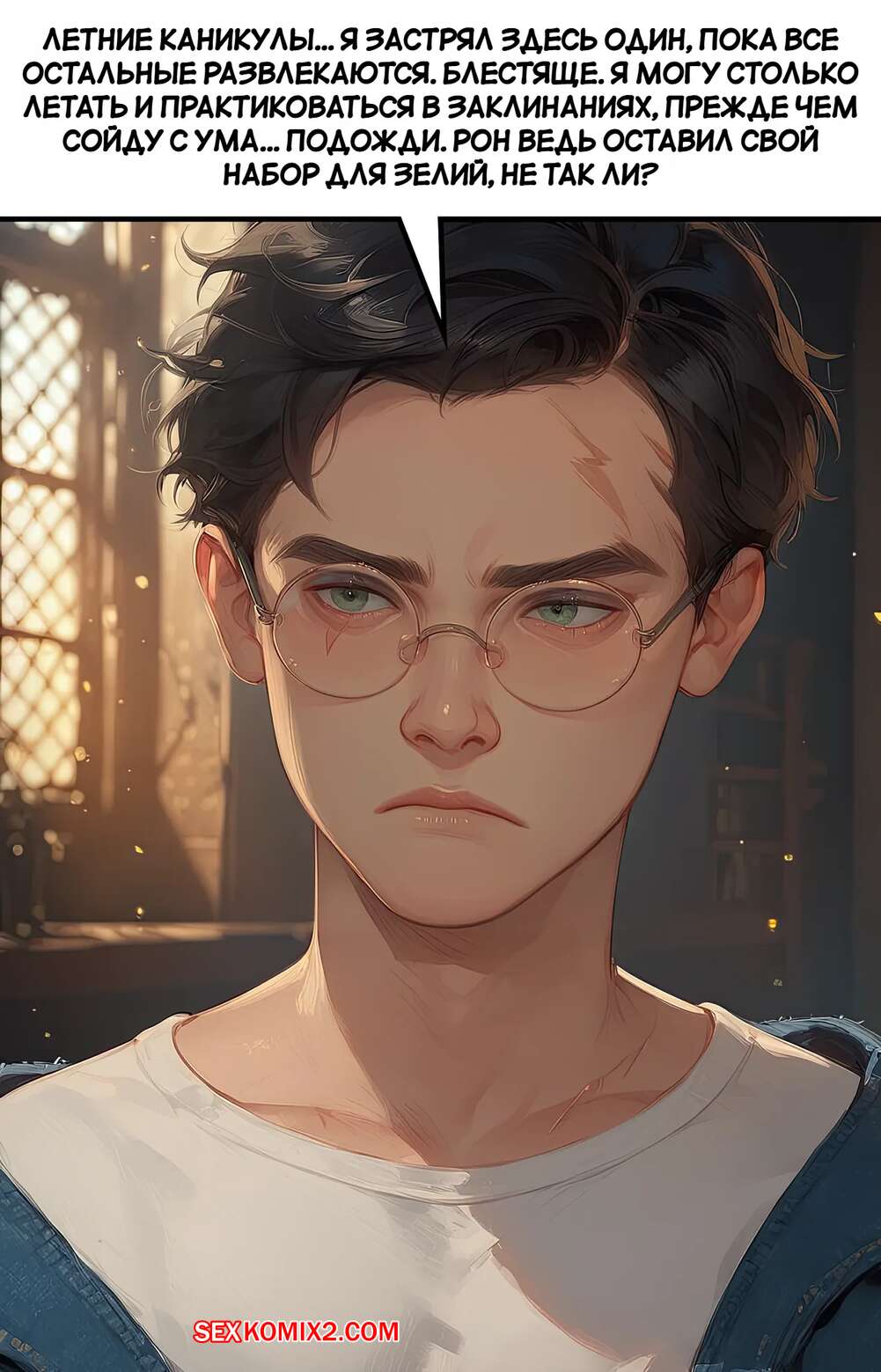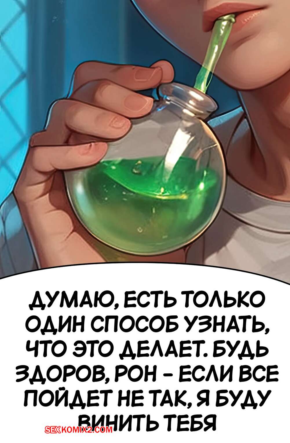 Порно комикс Гарри Поттер. Секреты самой яркой ведьмы. Часть 1. The Brightest Witchs Secrets Гермиона выпила необычное зелье и сильно возбудилась. Красотка разделась и легла на кровать, после чего стала ласкать свою пизденку, доставляя себе невероятное удовольствие.