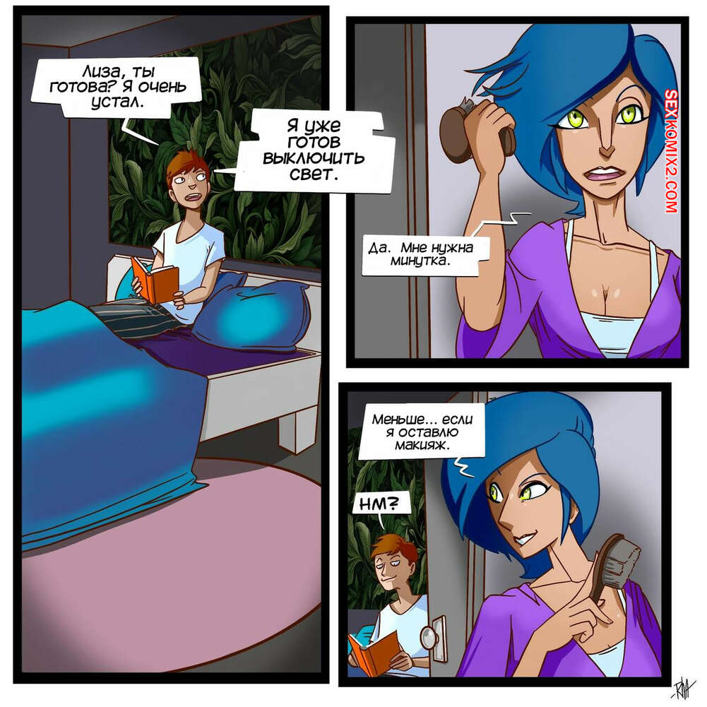 Порно комикс Скоро. Soonish. RhA 1981. Горячая красотка Лиза давно думает о том, чтобы устроить групповуху со своим парнем и своей подругой. Девушка вышла из ванной и стала соблазнять Джона, чтобы трахнуться с ним и убедить его на свою идею.