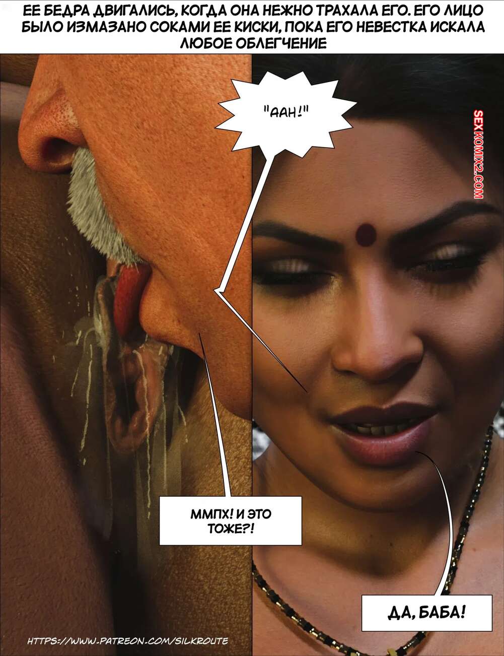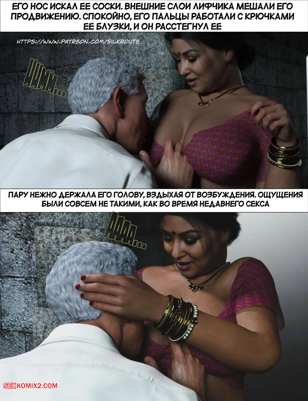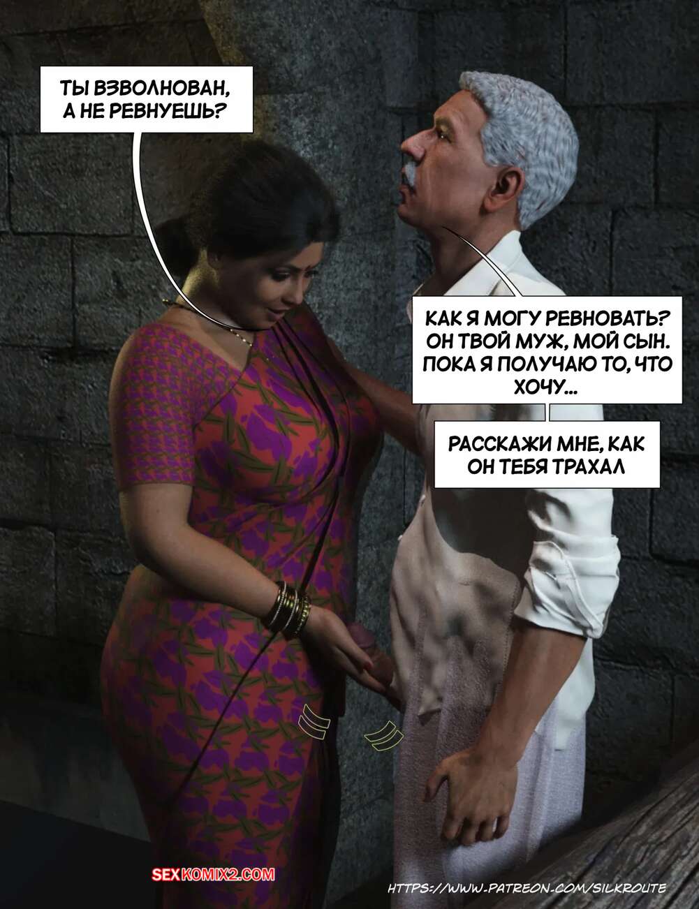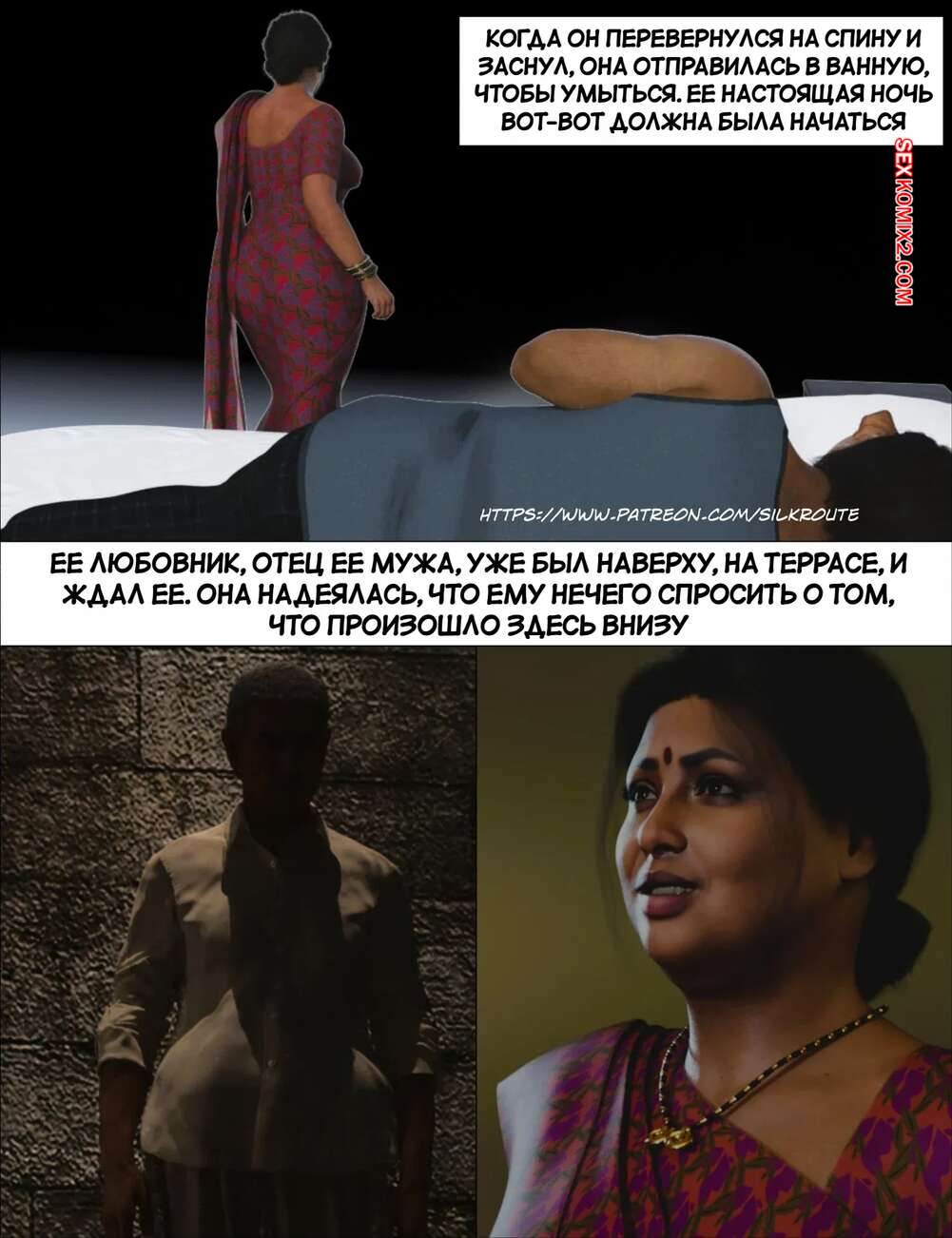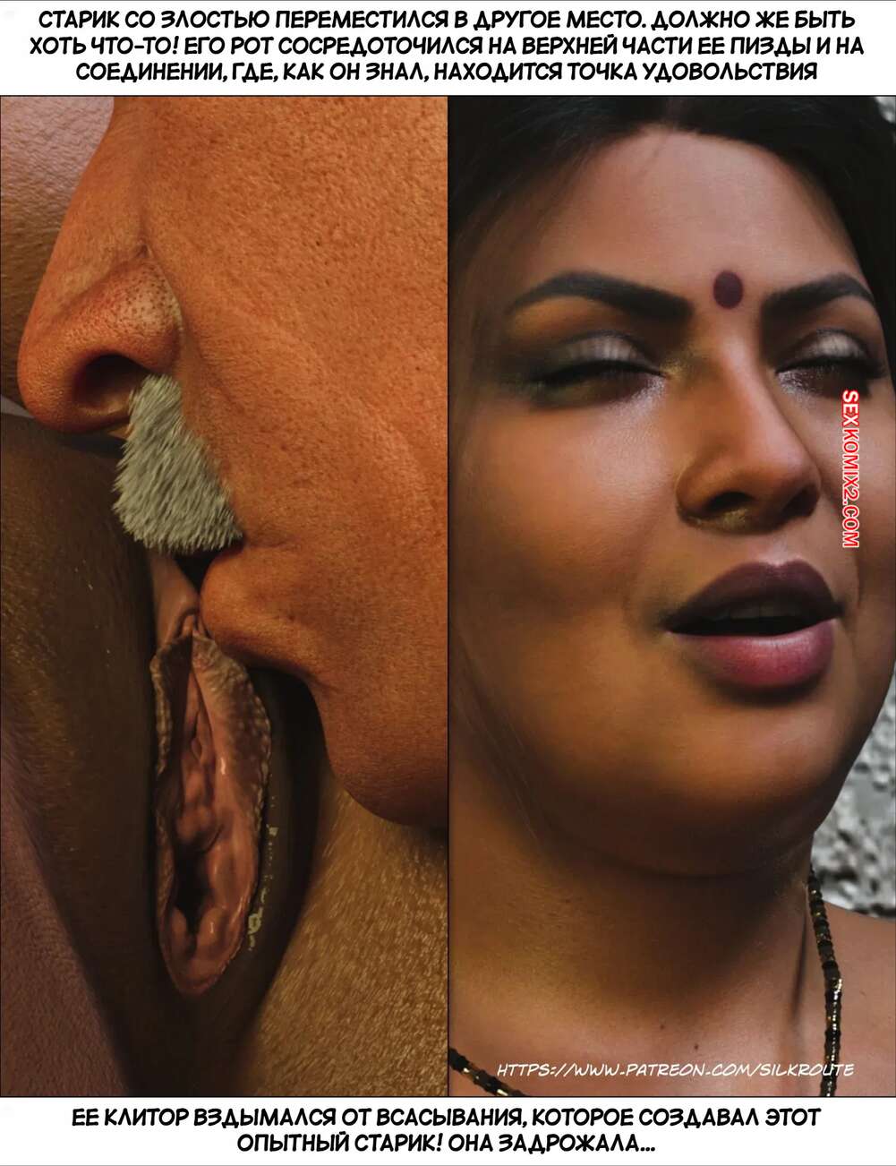 Порно комикс Моменты Масала. Часть 5. Masala Moments Горячая милфа уединилась ночью со стариком, чтобы они могли насладиться друг другом. Красотка оголила сиськи и дала мужику их полизать, после чего он стал лизать пизденку зрелой дамы.