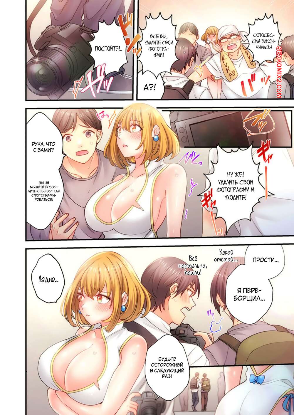 Порно комикс Мой фотоаппарат возбуждает девушек. Часть 6 Парень продолжает фотографировать сексуальную блондинку. Красотка очень возбудилась, поэтому она разделась и продолжила съемку в одном сексуальном белье.