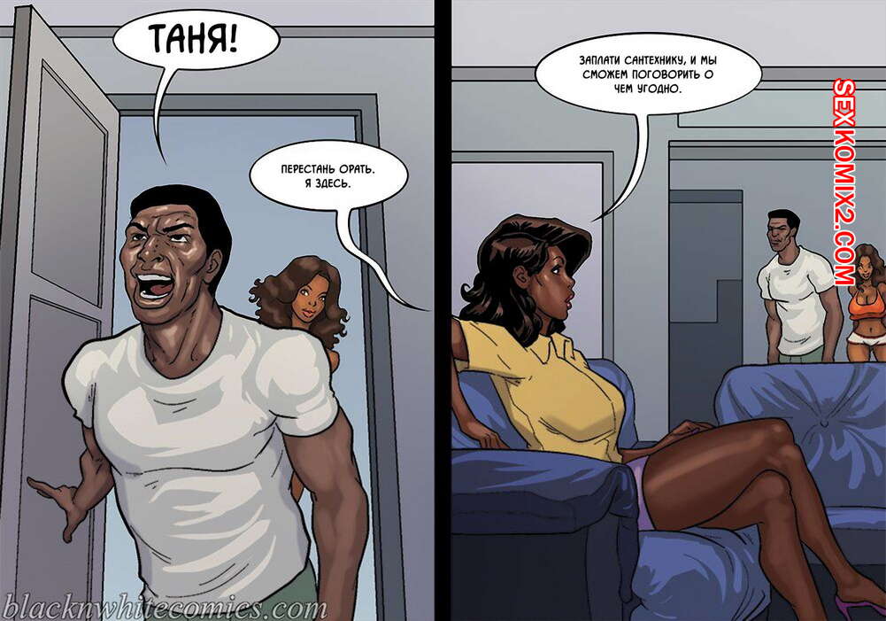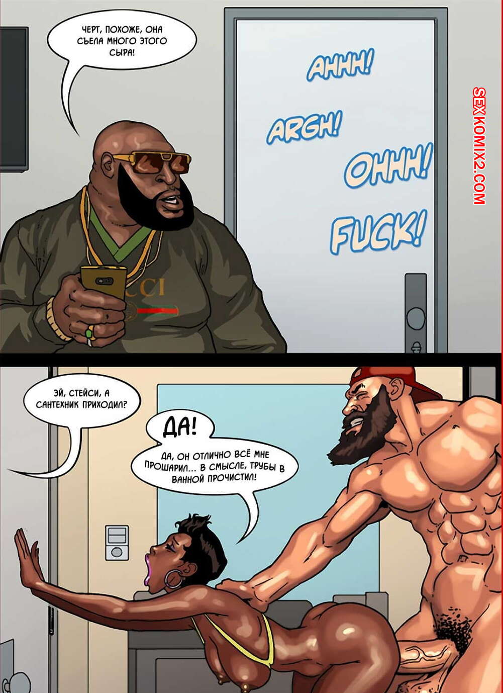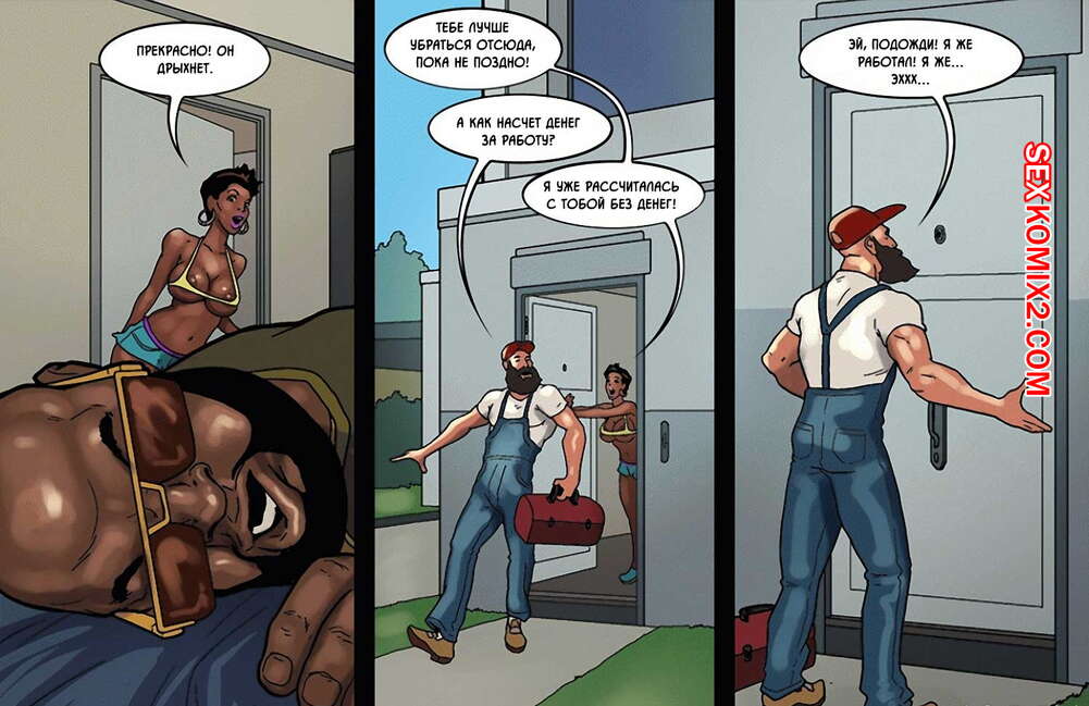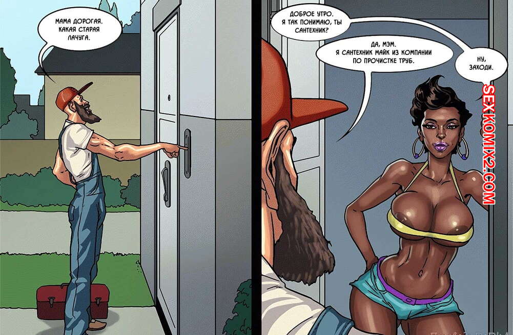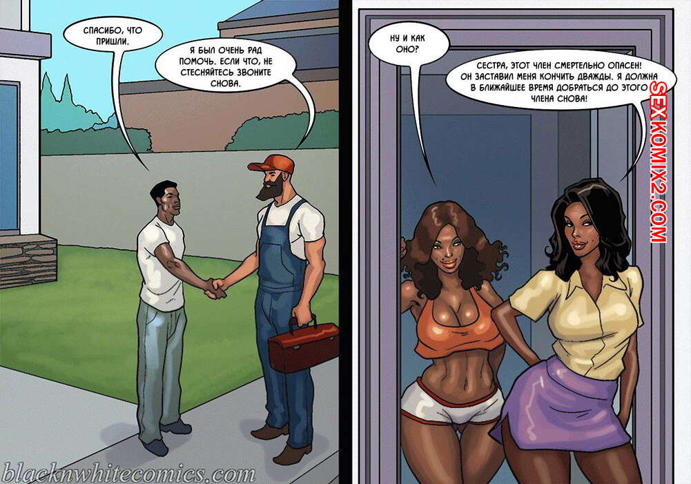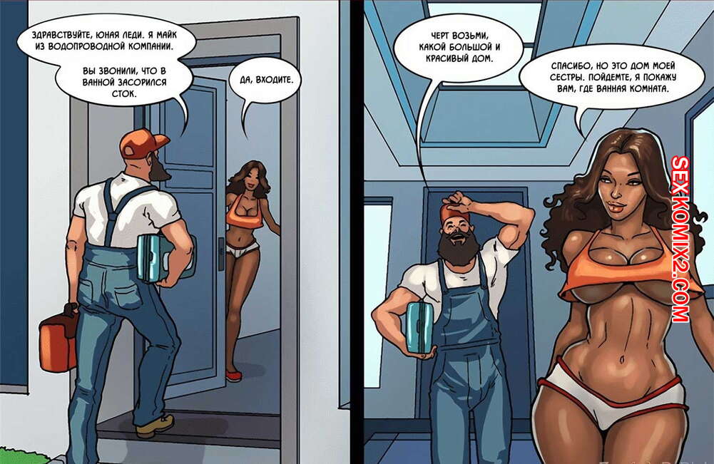 Порно комикс Сантехник Майк. Парень ремонтирует сантехнике в дорогих домах, и все женщина в них развратные. Она набрасываются на белого самца и просят трахнуть их черный киски.
