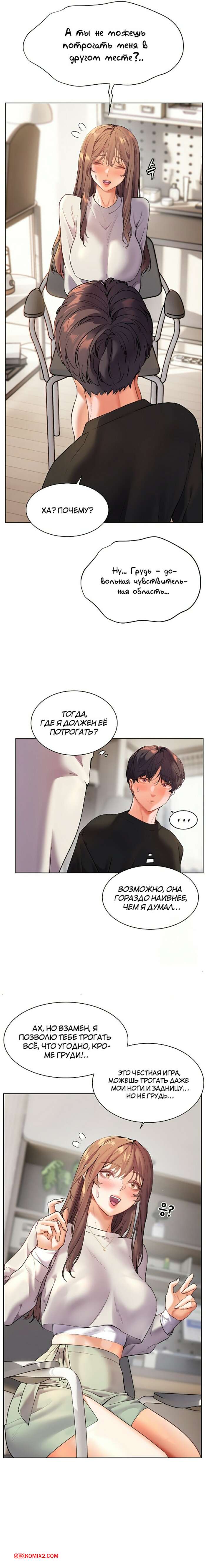 Порно комикс Усилия учителя. Часть 22 и 23 и 24 Парень с девушкой остались наедине и решили повеселиться. Красотка села на стул перед парнем и раздвинула ножки, после чего он стал ласкать ее сиськи, возбуждая девушку.
