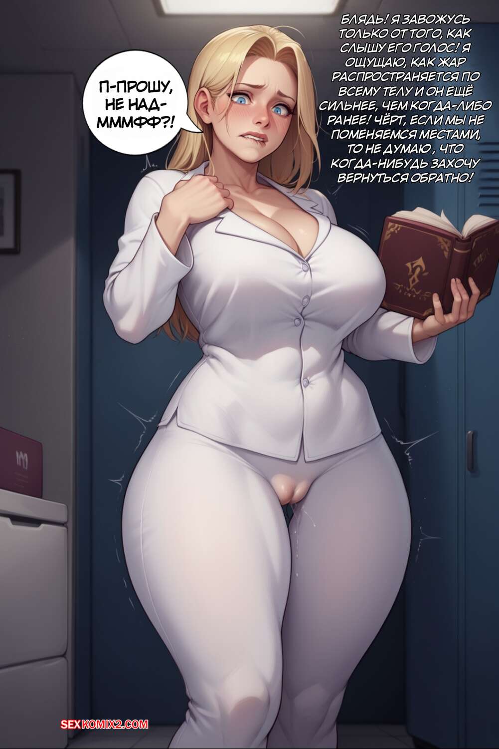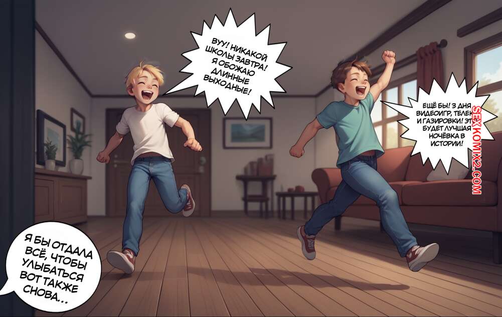 Порно комикс Долгие выходные. The Long Weekend Горячая милфа воспользовалась книгой заклинаний и поменялась телами со своим сыном. Теперь парнишка в теле матери привлекает внимание симпатичного парня. Он соблазняет горячую милфу и хорошенько ее трахает, заполняя своей спермой.