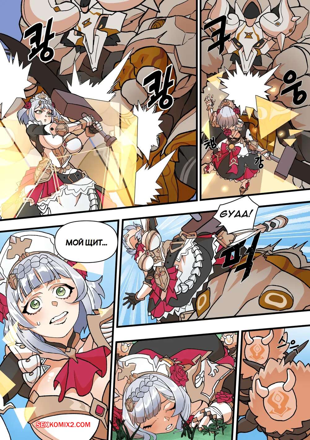 Порно комикс Genshin Impact. Мировая миссия. World Mission. An Episode of Noelle. bluecandy Злодей схватил горячую блондинку Ноэль и решил насладиться ее шикарным телом. Он вставил свой огромный хуй в пизденку девушки и как следует ее выебал, заполнив горячей спермой.