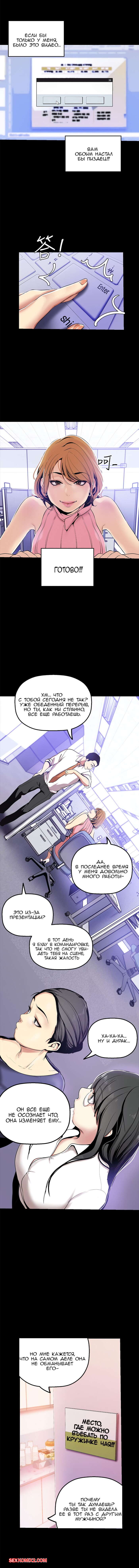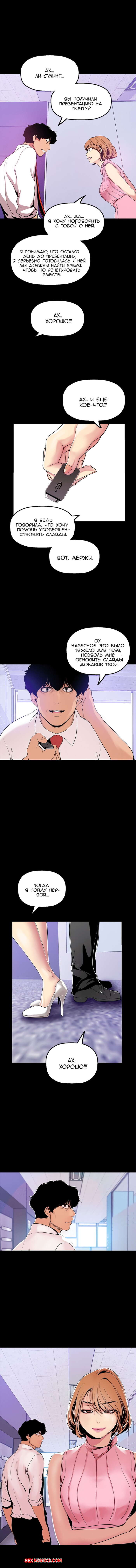 Порно комикс Прекрасный Новый Мир. Части 26 и 27 и 28. Beautiful New World. В офисе ночь, все работники разошлись по домам, и в этой тишине хорошо слышно стоны начальницы. Она снова трахается со своим подчиненным в кабинете.