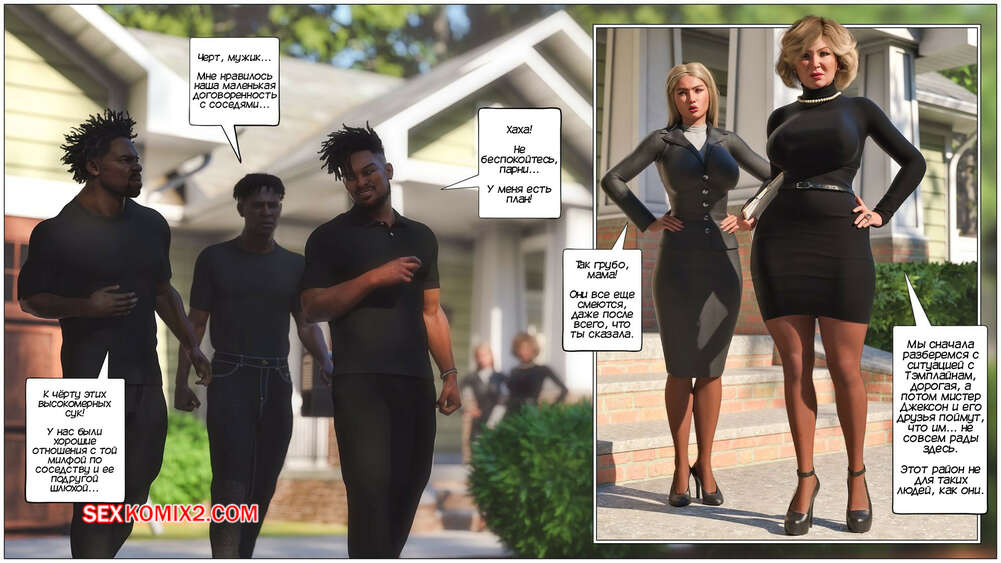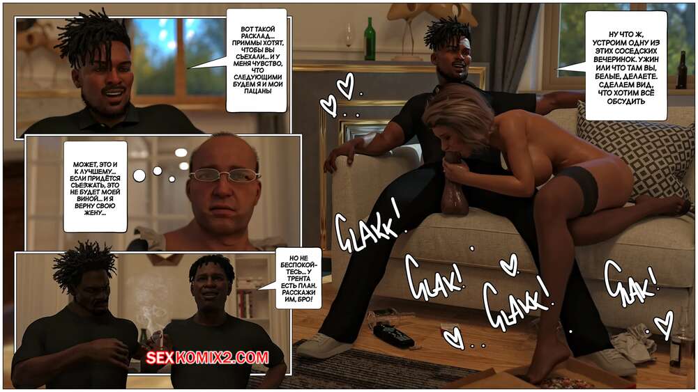 Порно комикс Милфа по соседству. Часть 2. The MILF Next Door. Tab109 Горячая милфа стала настоящей шлюшкой для удовлетворения похоти темнокожего парня. Трент каждый день приходит к красотке, чтобы хорошенько ее выебать, пока ее муж за всем наблюдает.