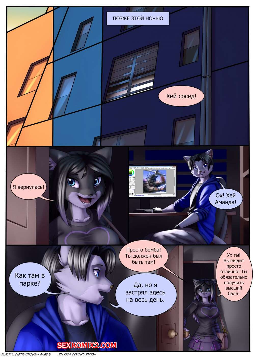Порно комикс Игривое отвлечение. Парень очень долго сидит за компьютером и ему уже пора отвлечься. Его девушка пришла чтобы и забрала его на тусовку после, которой она отправились к ней и занялись сексом.