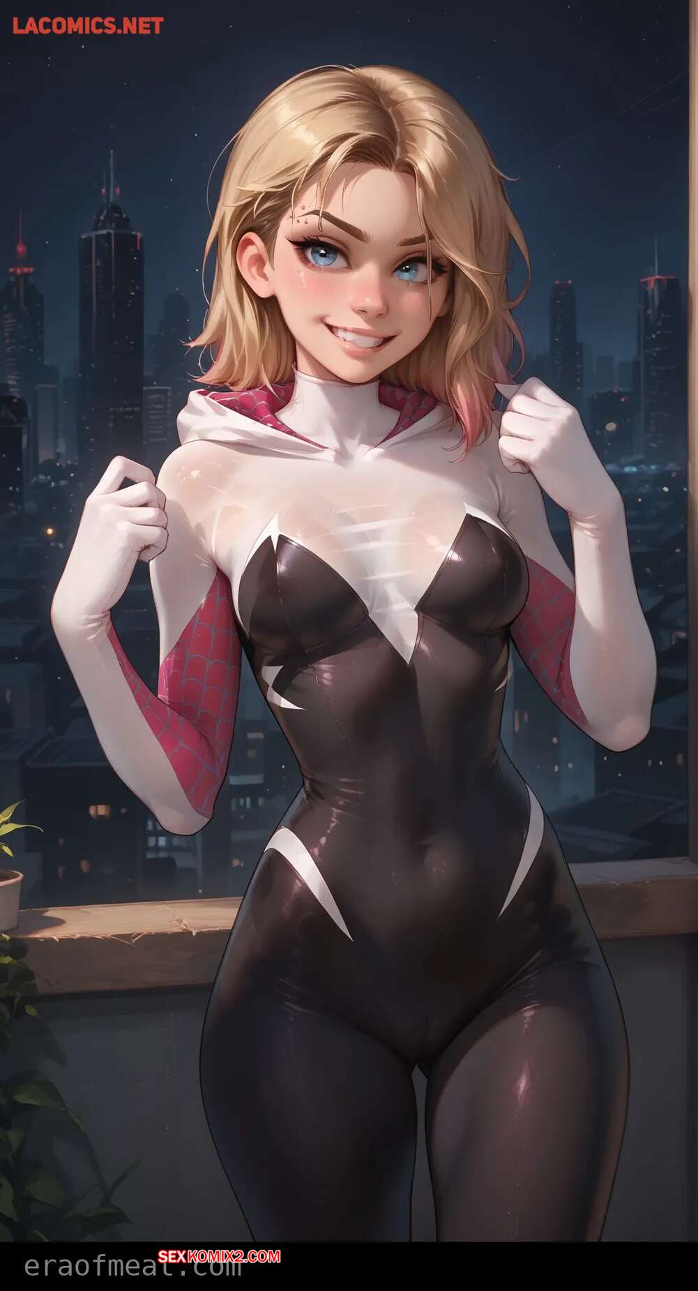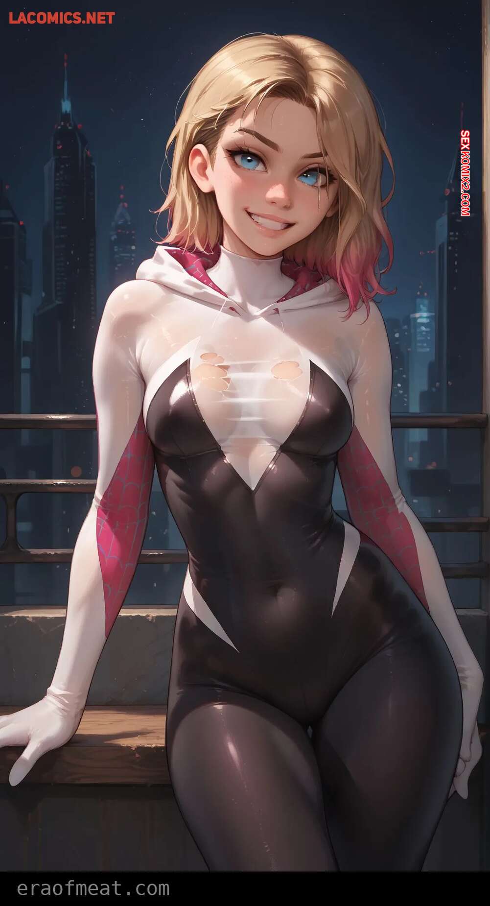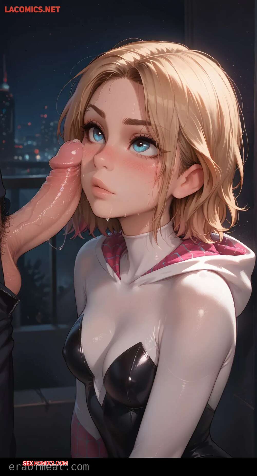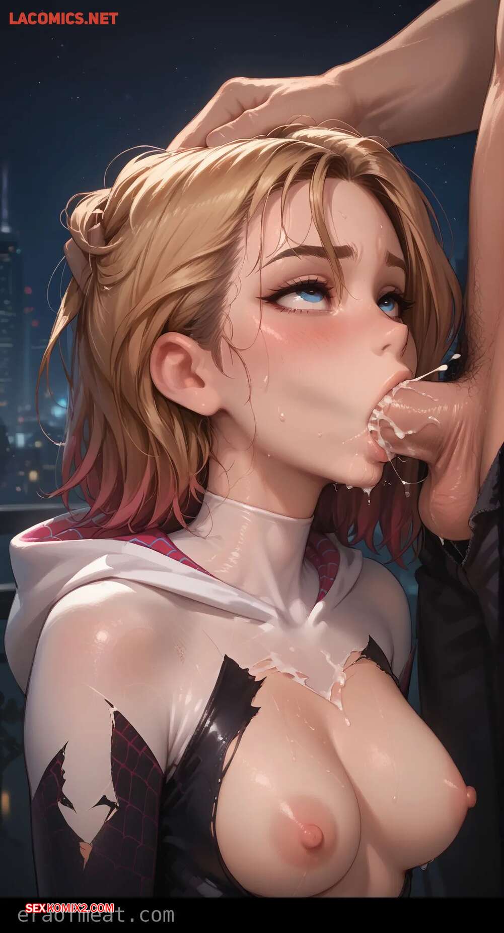 Порно комикс Gwen. Era of Meat Горячая блондинка Гвен очень возбуждена и хочет трахаться. Она встала на колени и отсосала большой хуй парня, после чего раздвинула ножки и дала ему себя выебать.