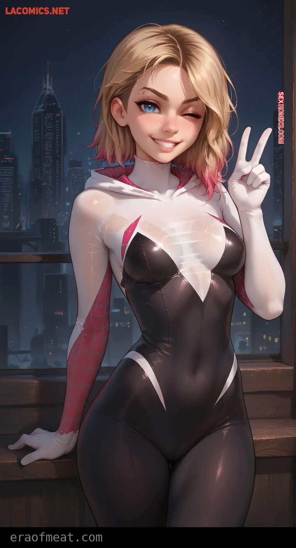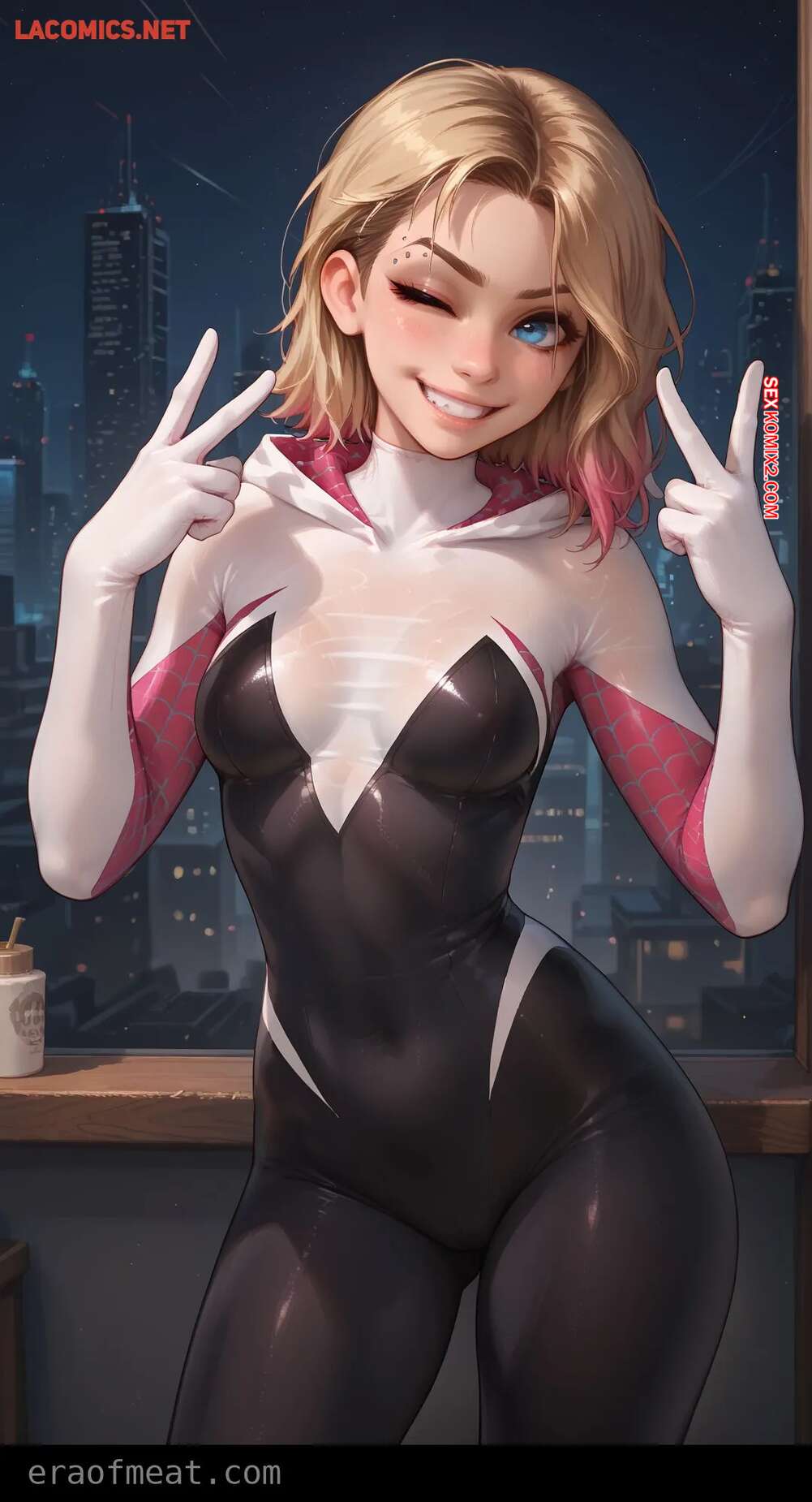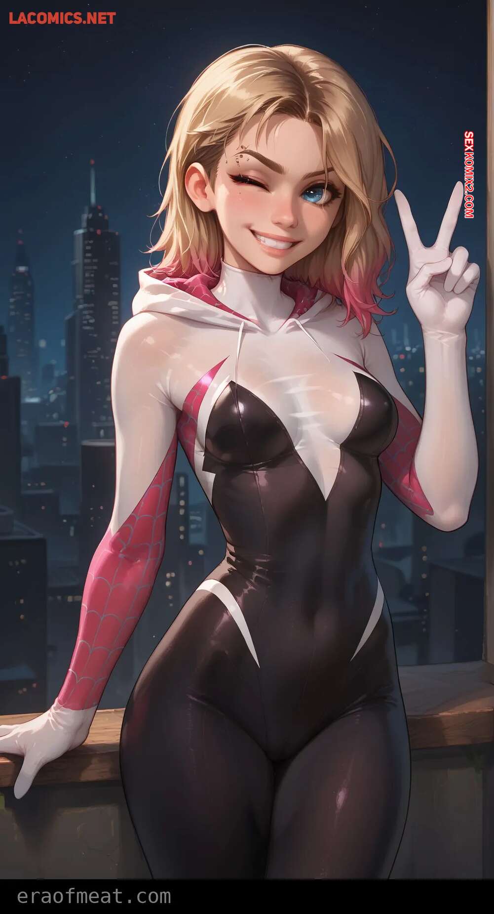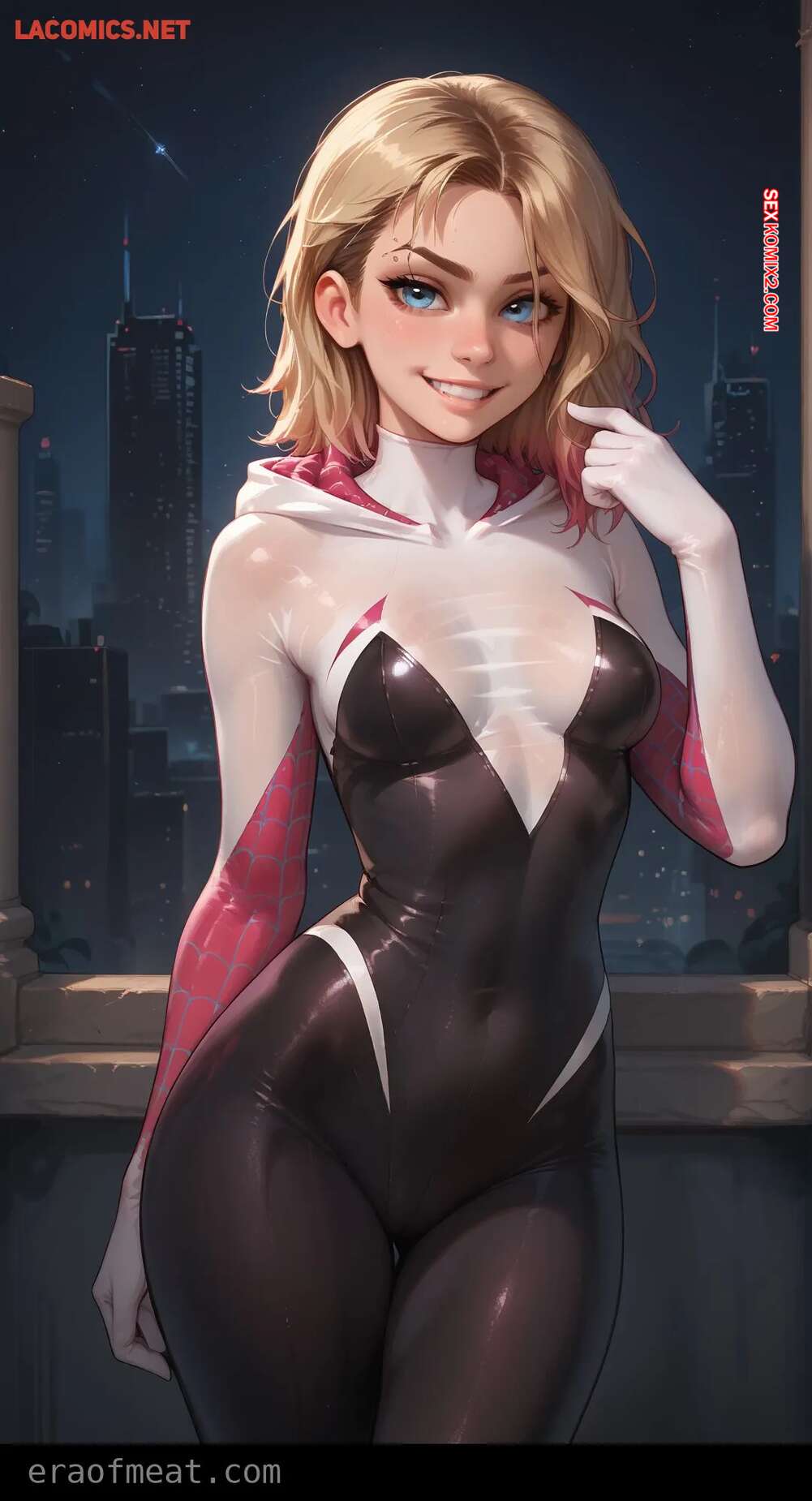 Порно комикс Gwen. Era of Meat Горячая блондинка Гвен очень возбуждена и хочет трахаться. Она встала на колени и отсосала большой хуй парня, после чего раздвинула ножки и дала ему себя выебать.